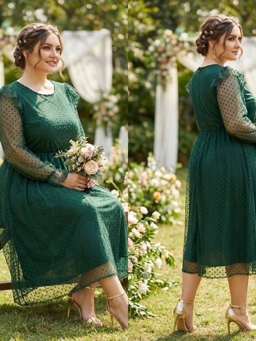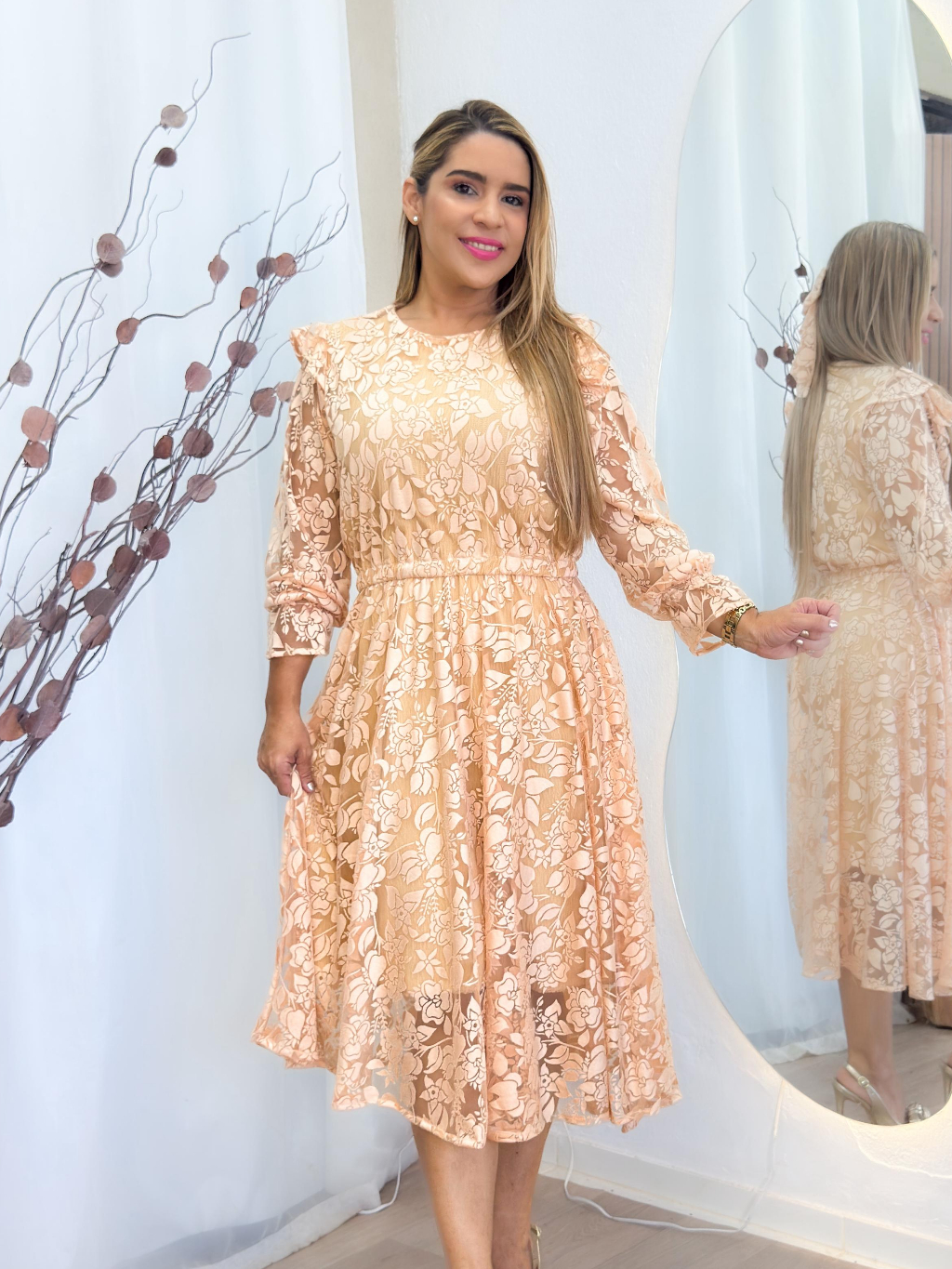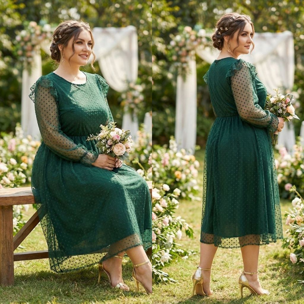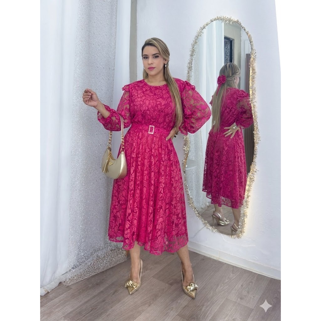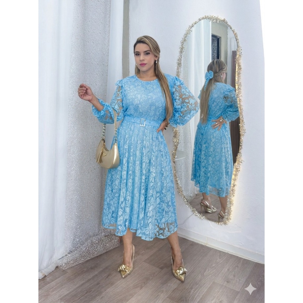 Vestido Evangélico cinto Midi saia Plissada Manga Princesa e botão De Festa