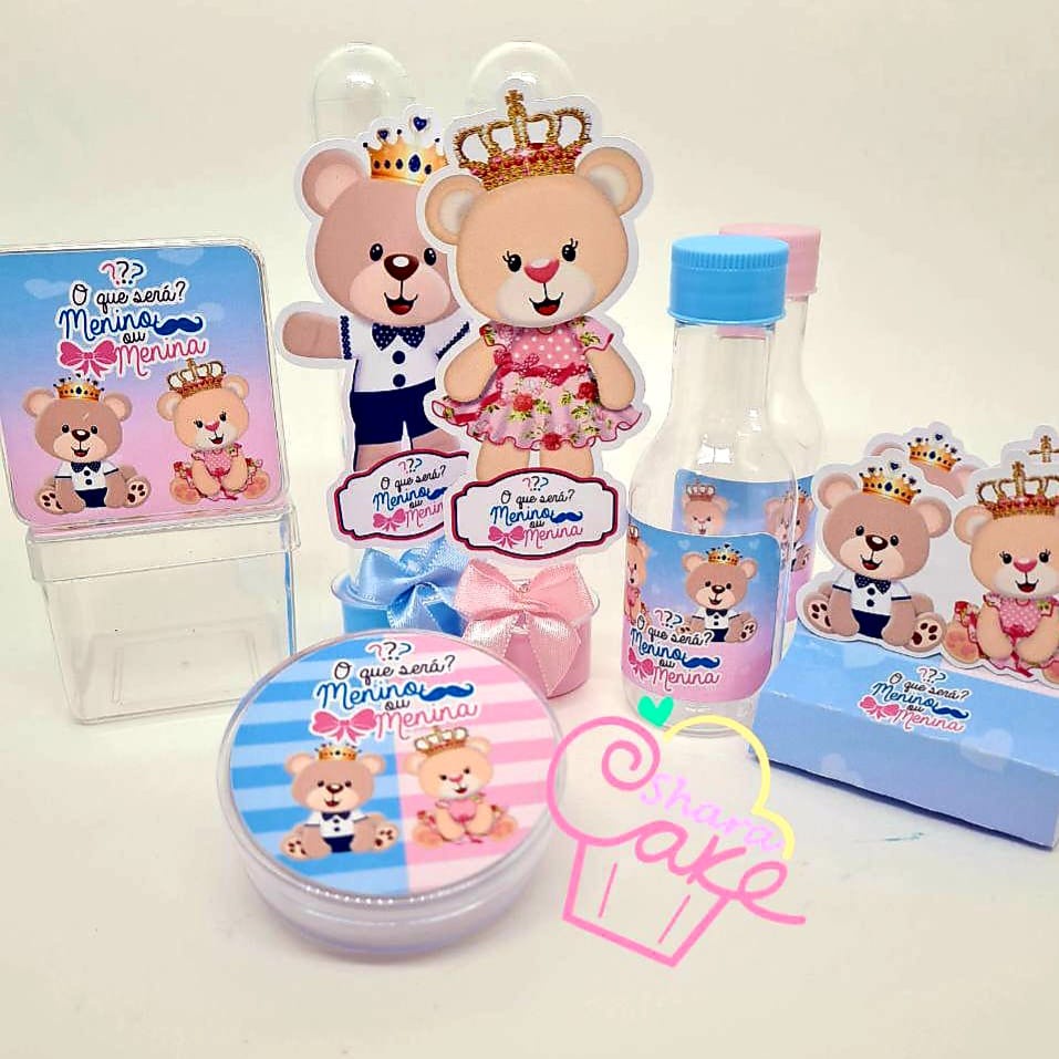 Kit Festa Chá Revelação Ursinho Realeza - 50 Peças