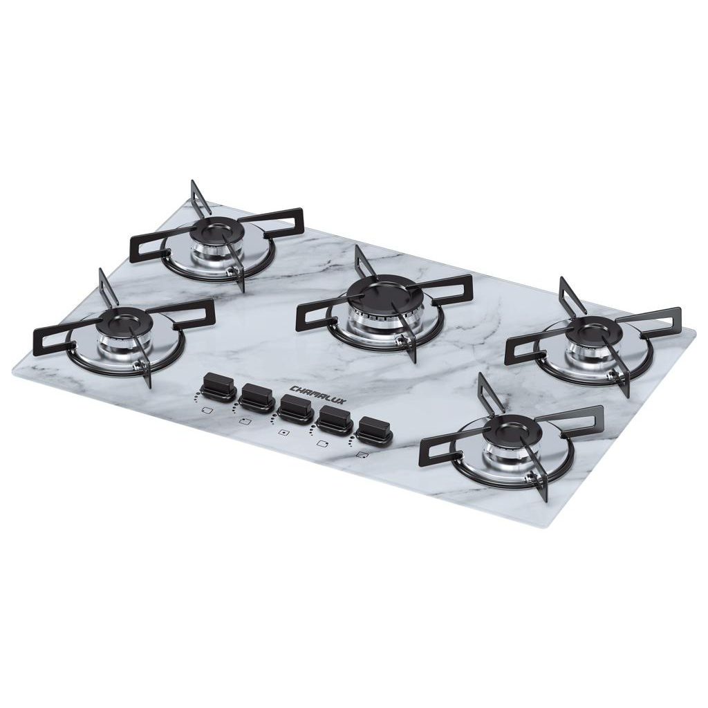 Fogão Cooktop Gás Chamalux 5 Bocas Marmorizado Branco Trempe de Chapa