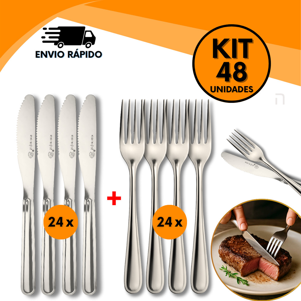 Kit Garfo e Faca Talheres Aço Inox para Refeição Buffet Qualidade Garantida