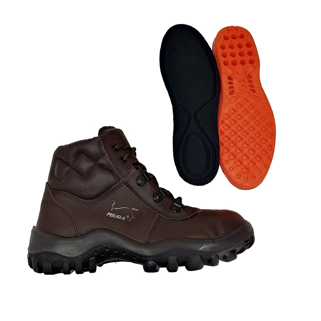 Bota Botina Miura Marrom Couro Bico de PVC com Palmilha e CA