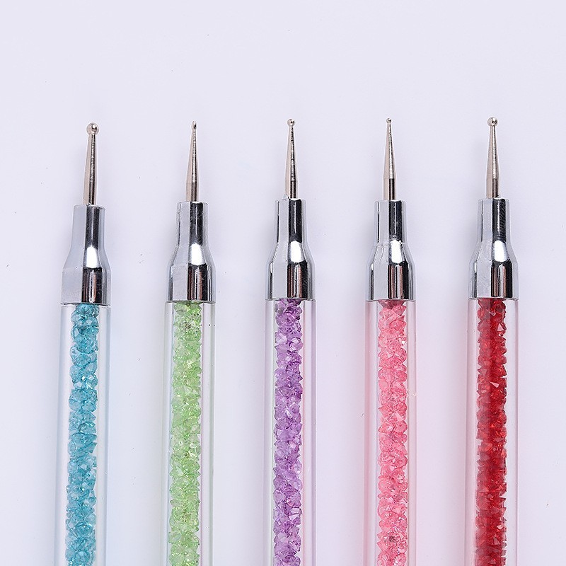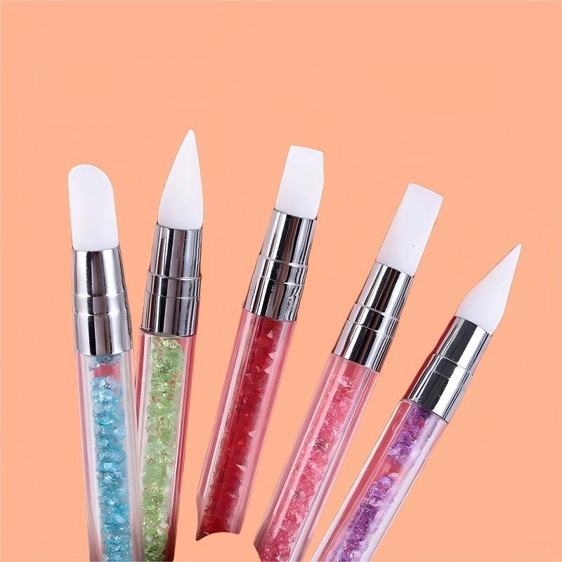Um pacote de 5 canetas de silicone para nail art, canetas de cola em bastão, canetas de pressão adesiva de cabeça dupla