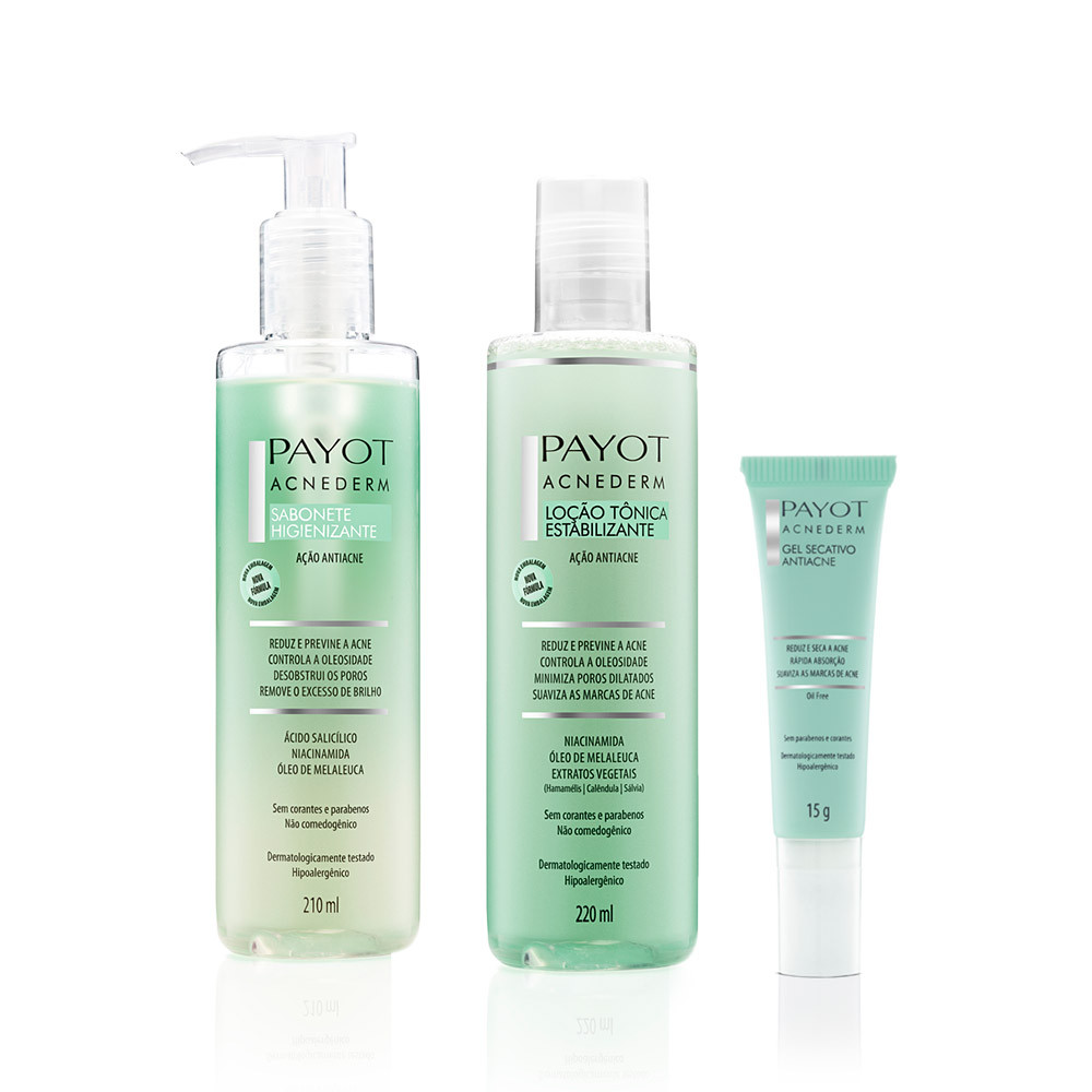 Kit Sabonete Facial + Tônico Facial + Gel Secativo Acnederm Payot