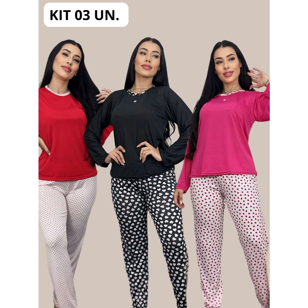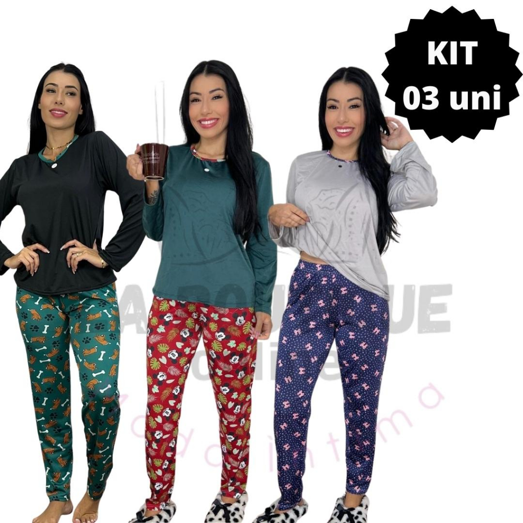 kit 03 Pijamas longos de Frio Personagens Blogueiras Rafaela.