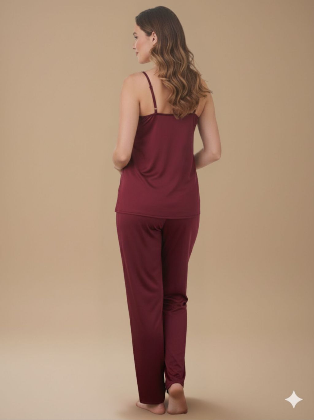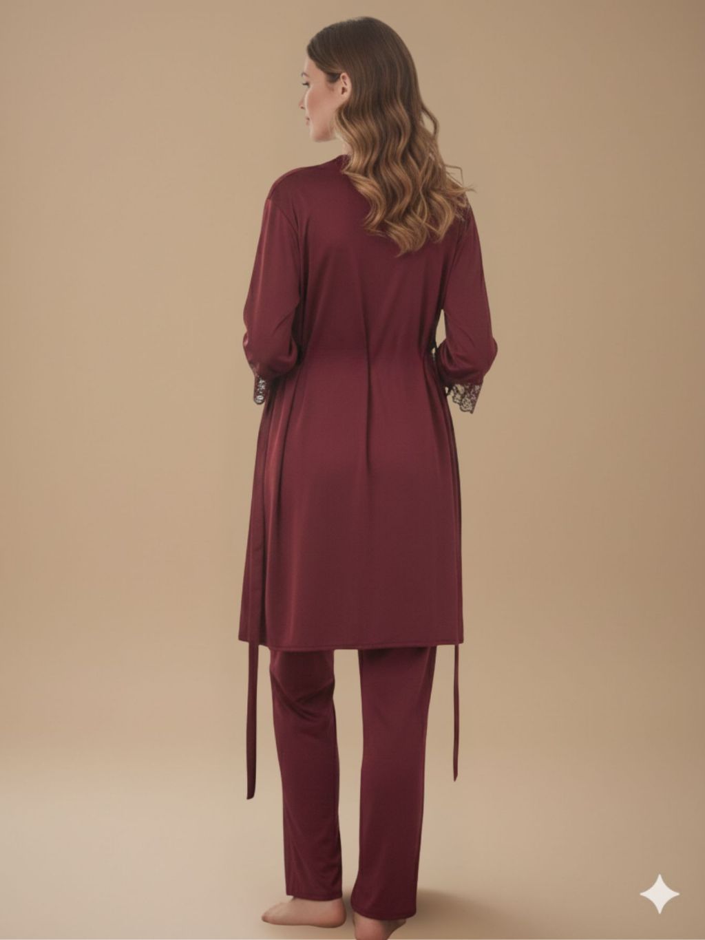 KIT Pijama Amamentação BabyDoll com CALÇA Longa e Blusa Com Click + ROBE em Renda