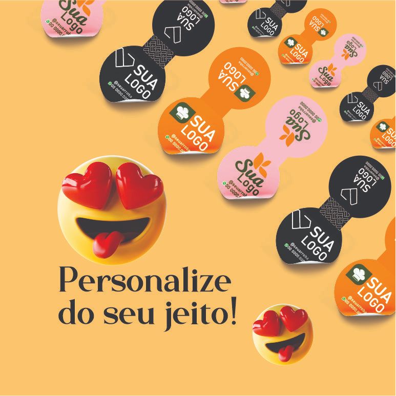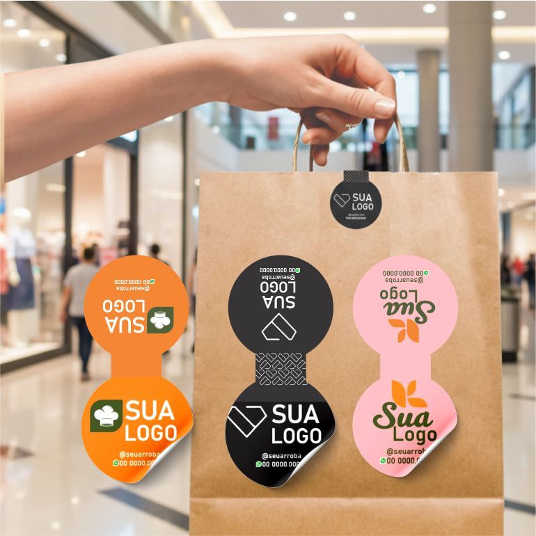 200 Adesivos Lacre de Sacola Personalizados com Sua Logo - Papel Glossy Brilho 6x2,8cm -