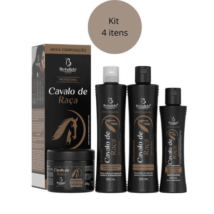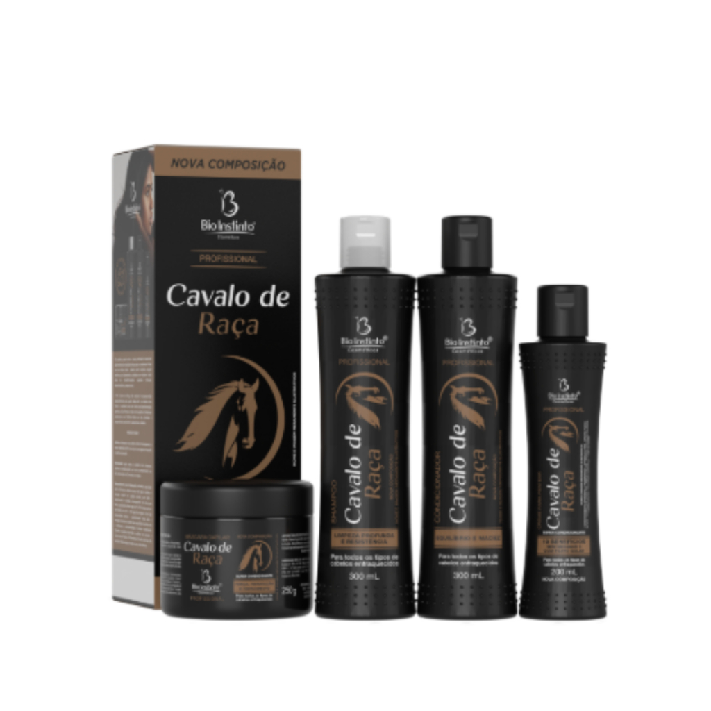 Kit Capilar Shampoo Condicionador Mascara de Hidratação Leave In Cavalo de Raça Anti Queda Força e Crescimento Bio Ins
