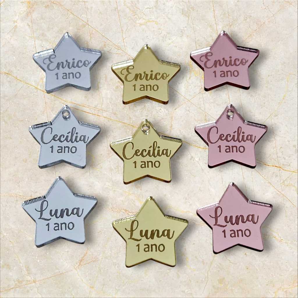 Etiquetas tags com Nomes Apliques Acrílico (2cm) - Estrela
