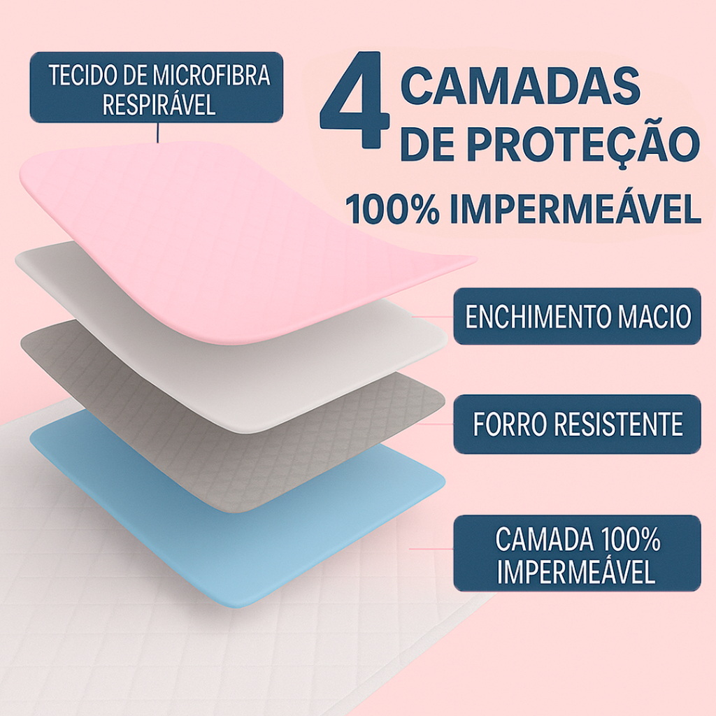 Capa de Colchão Protetor Impermeável c/ 4 Camadas de Proteção - Vários Tamanhos