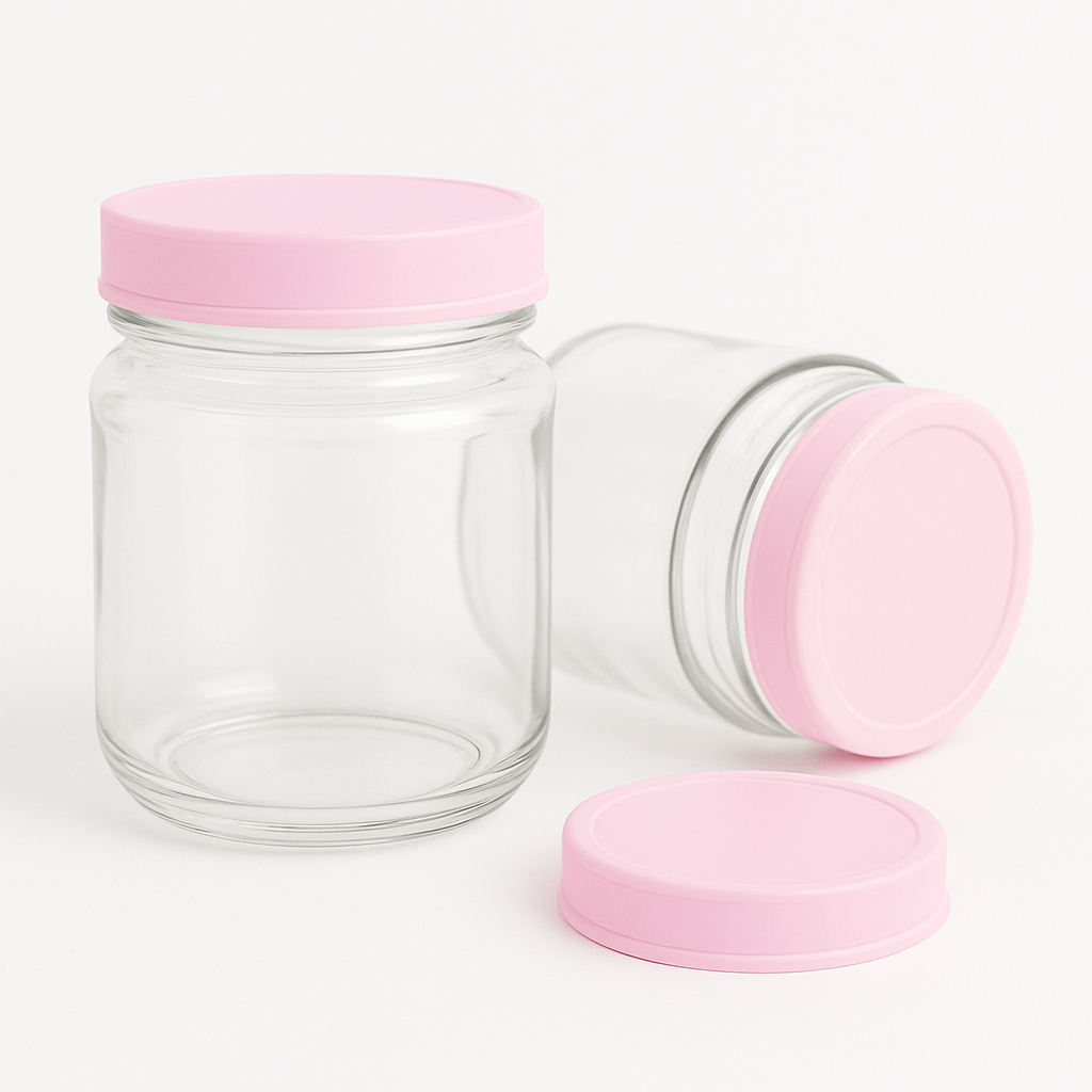 12 Potes de vidro 240ml Para Armazenamento de Leite Materno Rosa Tampa Plastica BPA Free