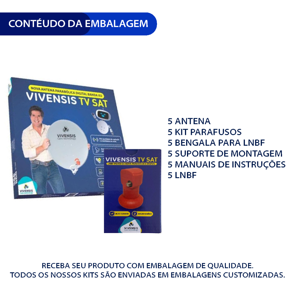 KIT 10 MINIPARABÓLICA VIVENSIS 60 CM + 10LNBF DUPLO