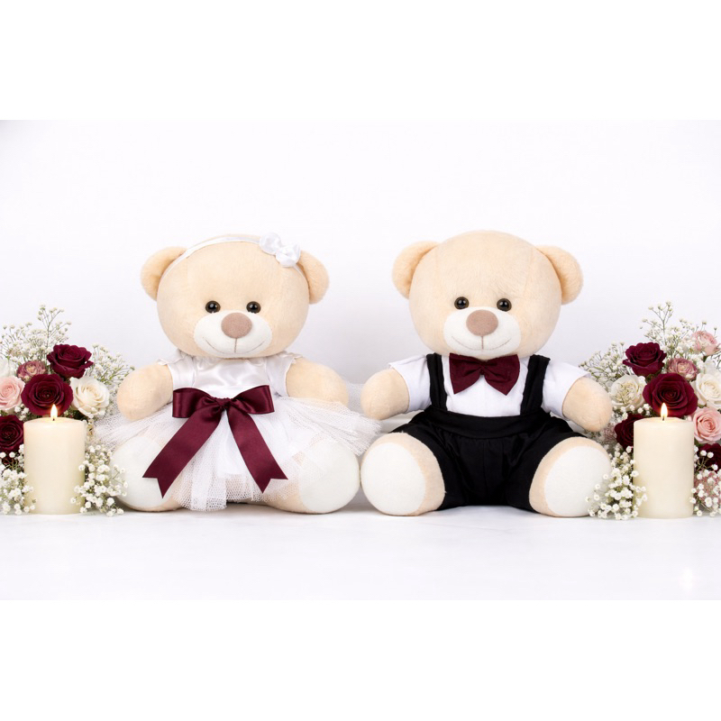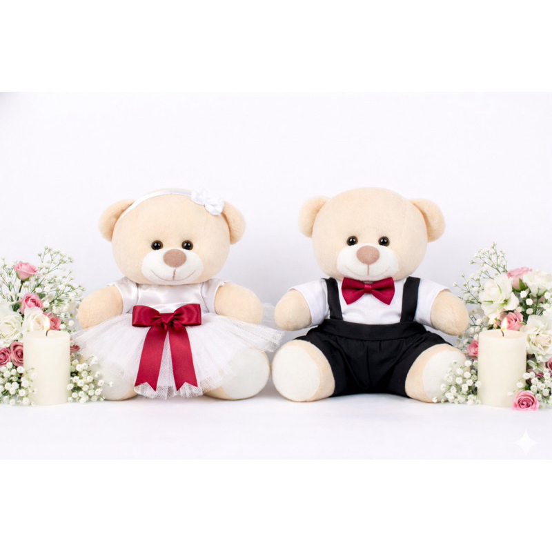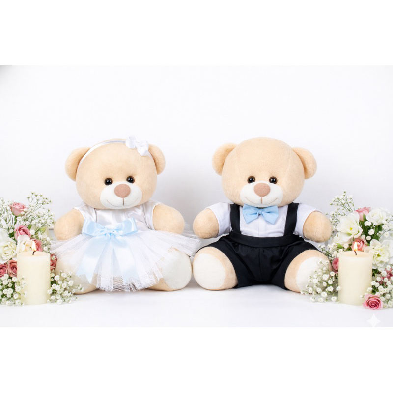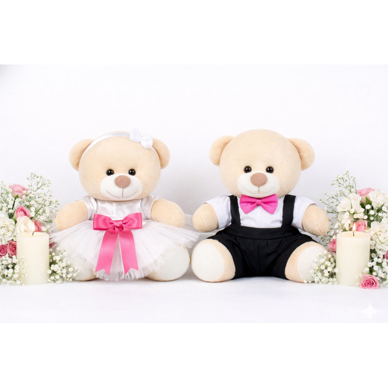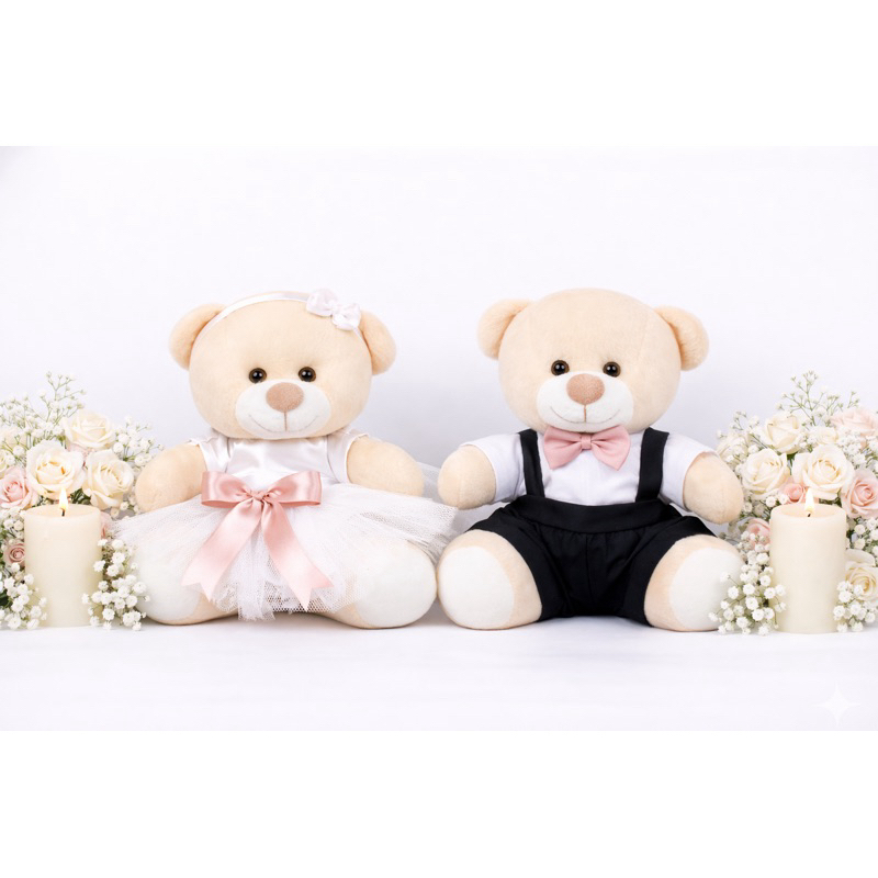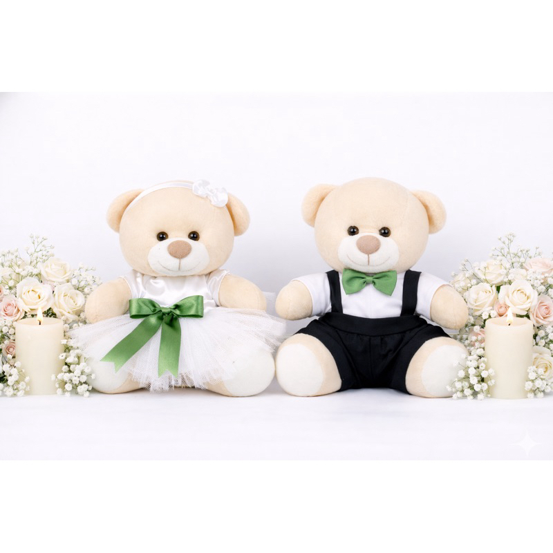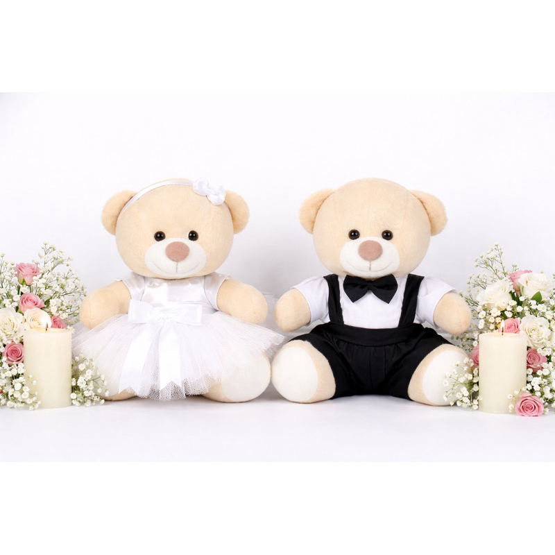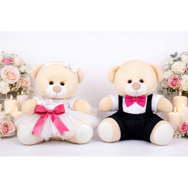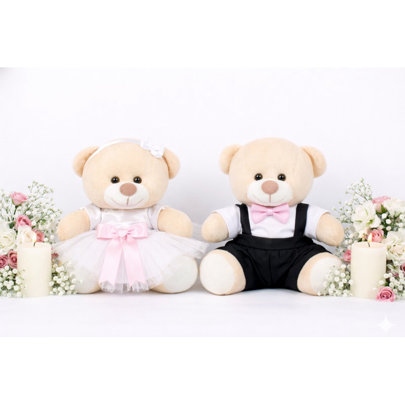 Casal de ursinhos pelúcia noivinhos pajem daminha e decoração do seu casamento