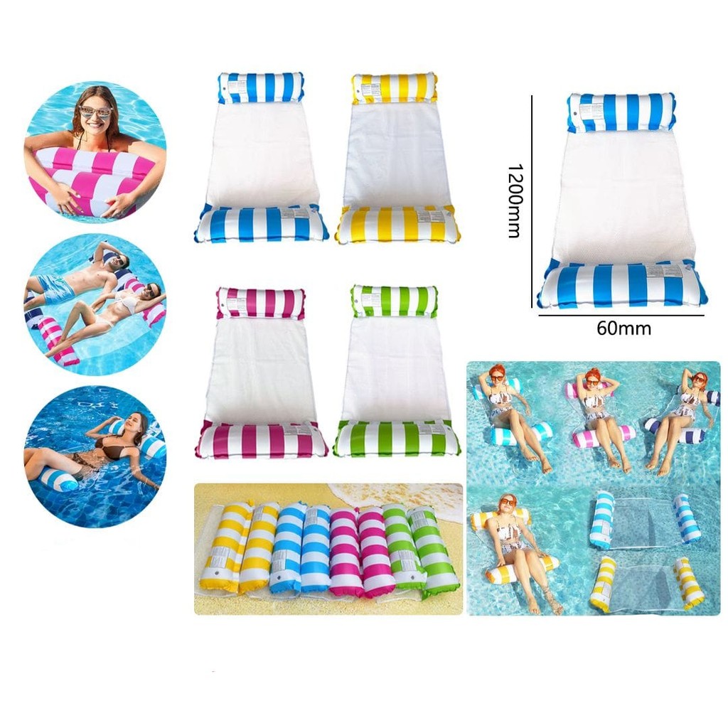 Boia Rede Inflável Adulto 120x60cm Em PVC Hammock Listrado Relaxante Verão Praia e Natação DKL