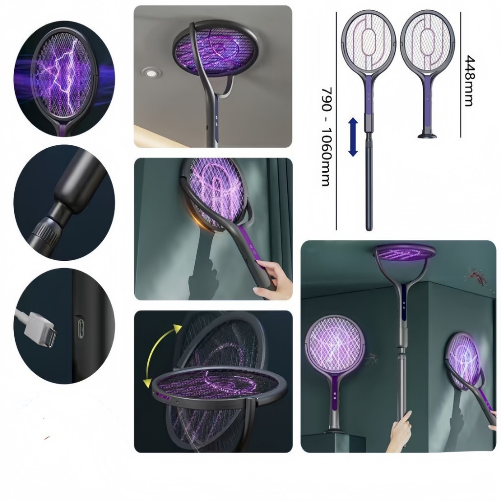 Raquete elétrica Mata Mosquito Recarregável Tipo C Bivolt C/ Suporte de Mesa - 448mm/1060mm DKL