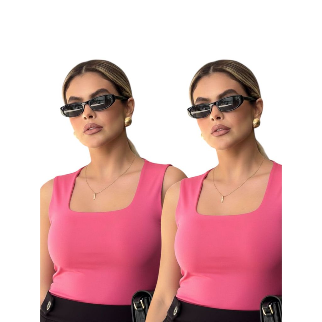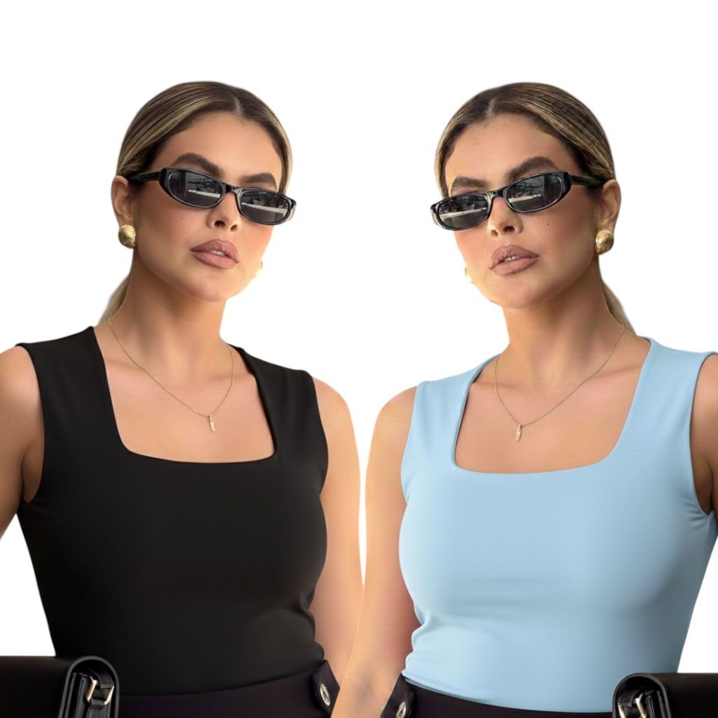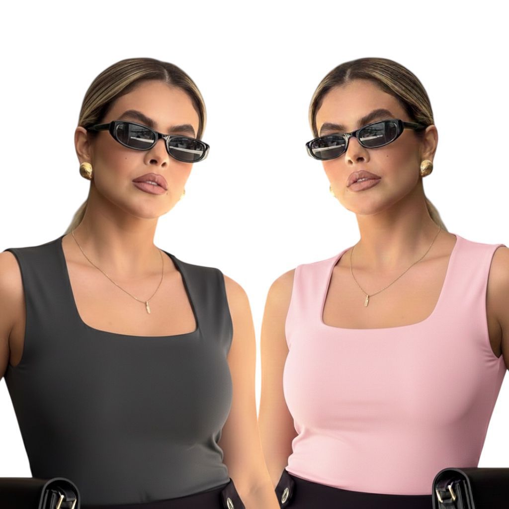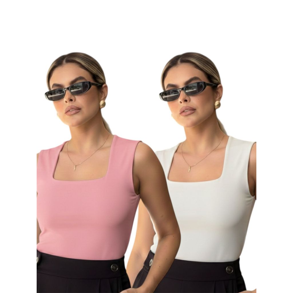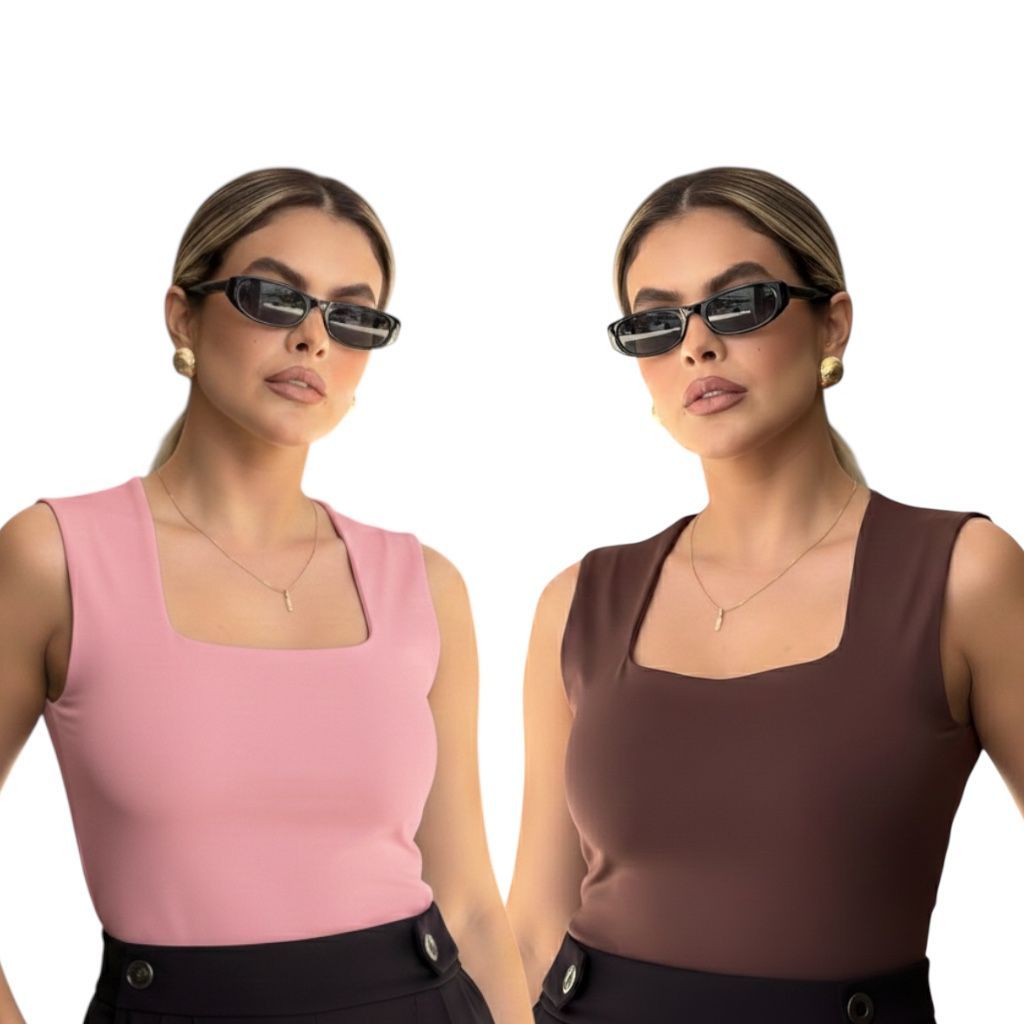 Kit 2 Regata Feminina Blusinha Decote Suplex Básica Lisa Moda Elegante Blogueira Tendência Academia