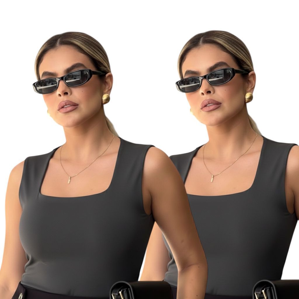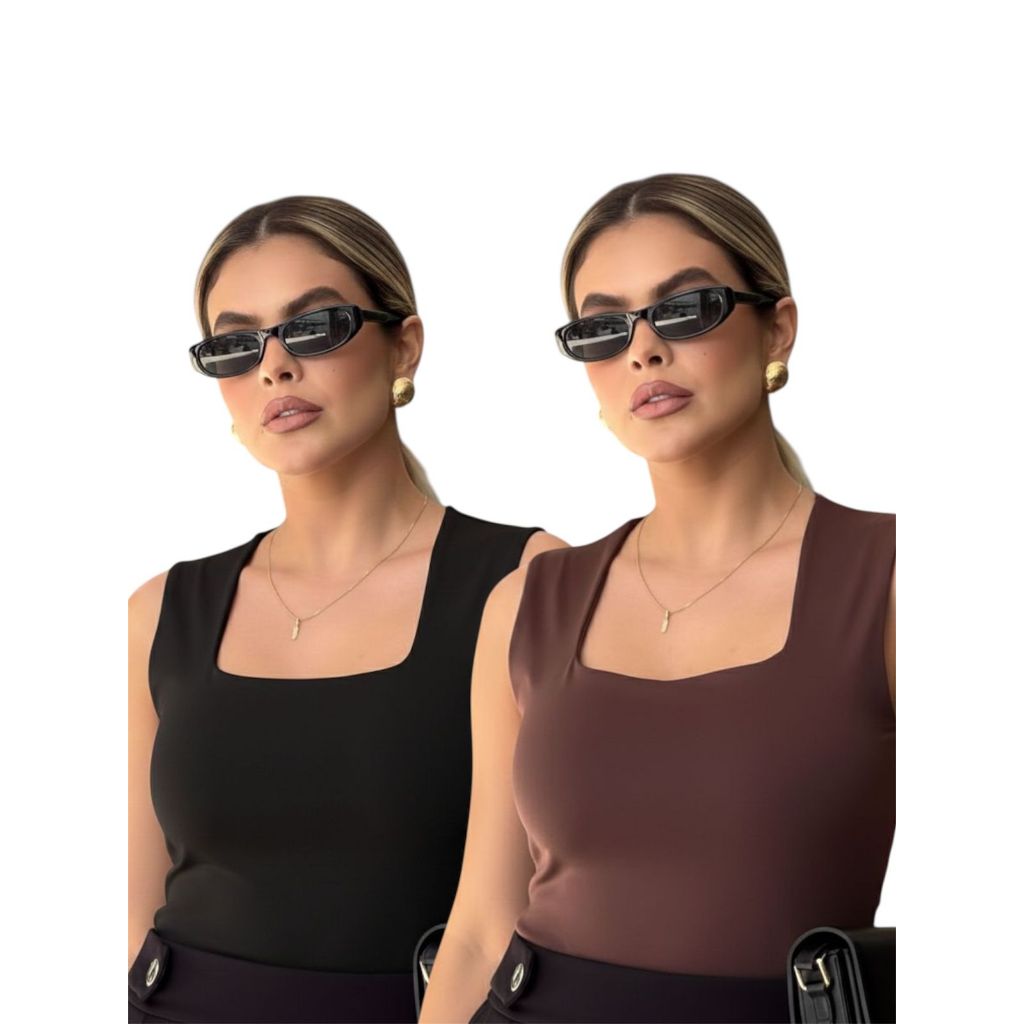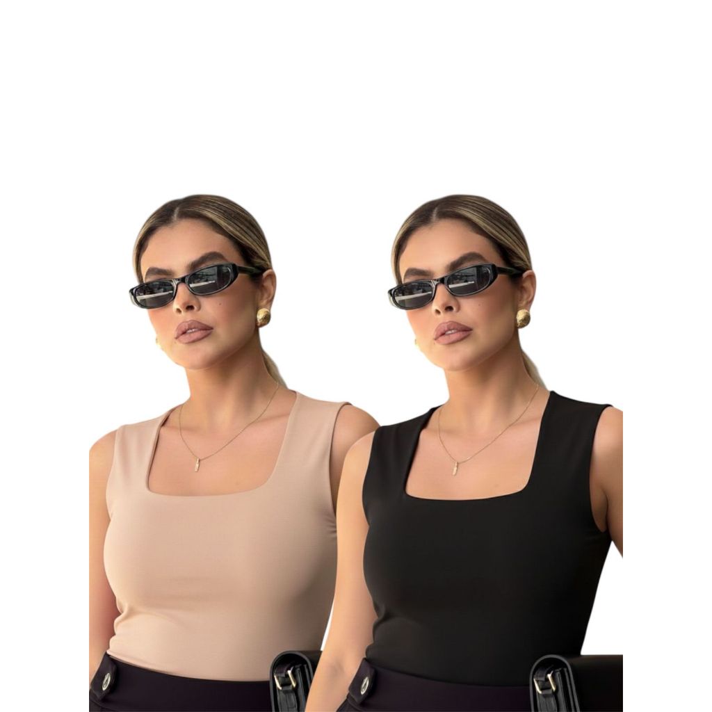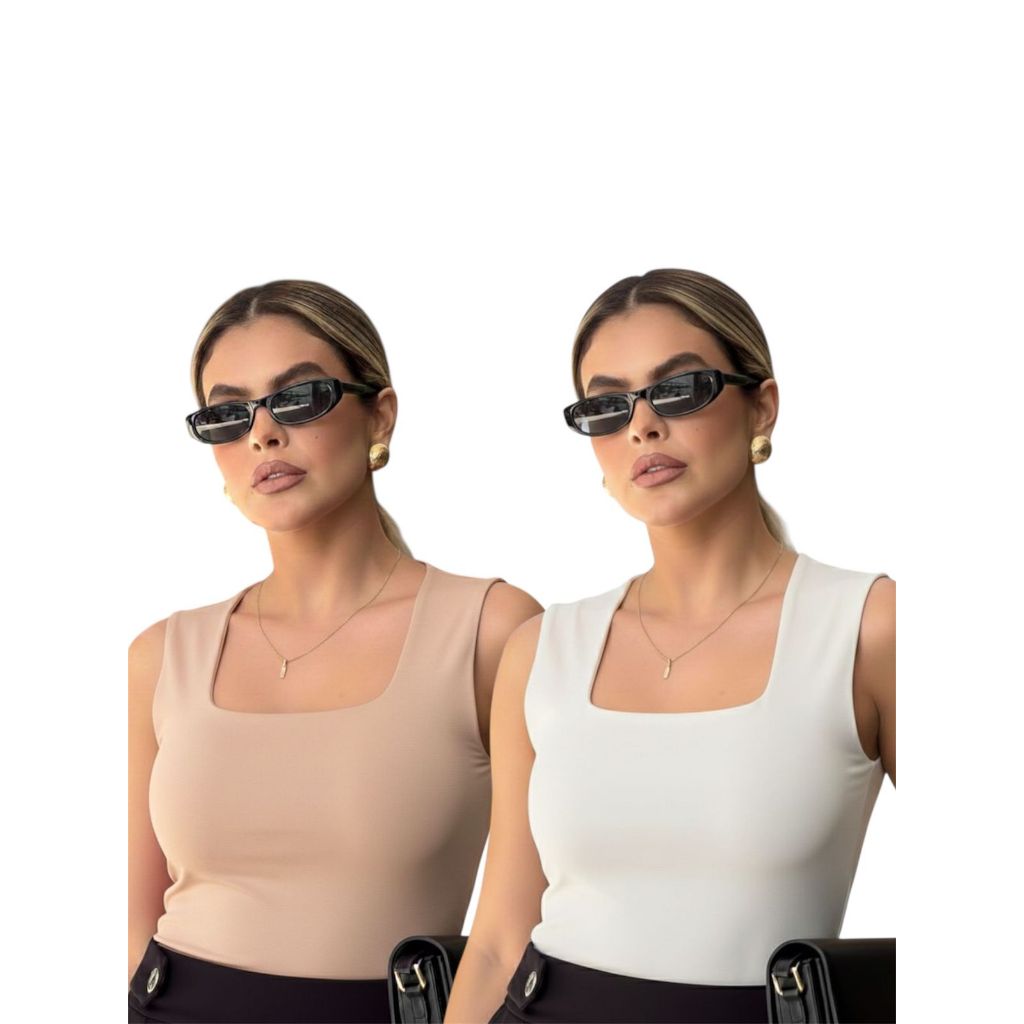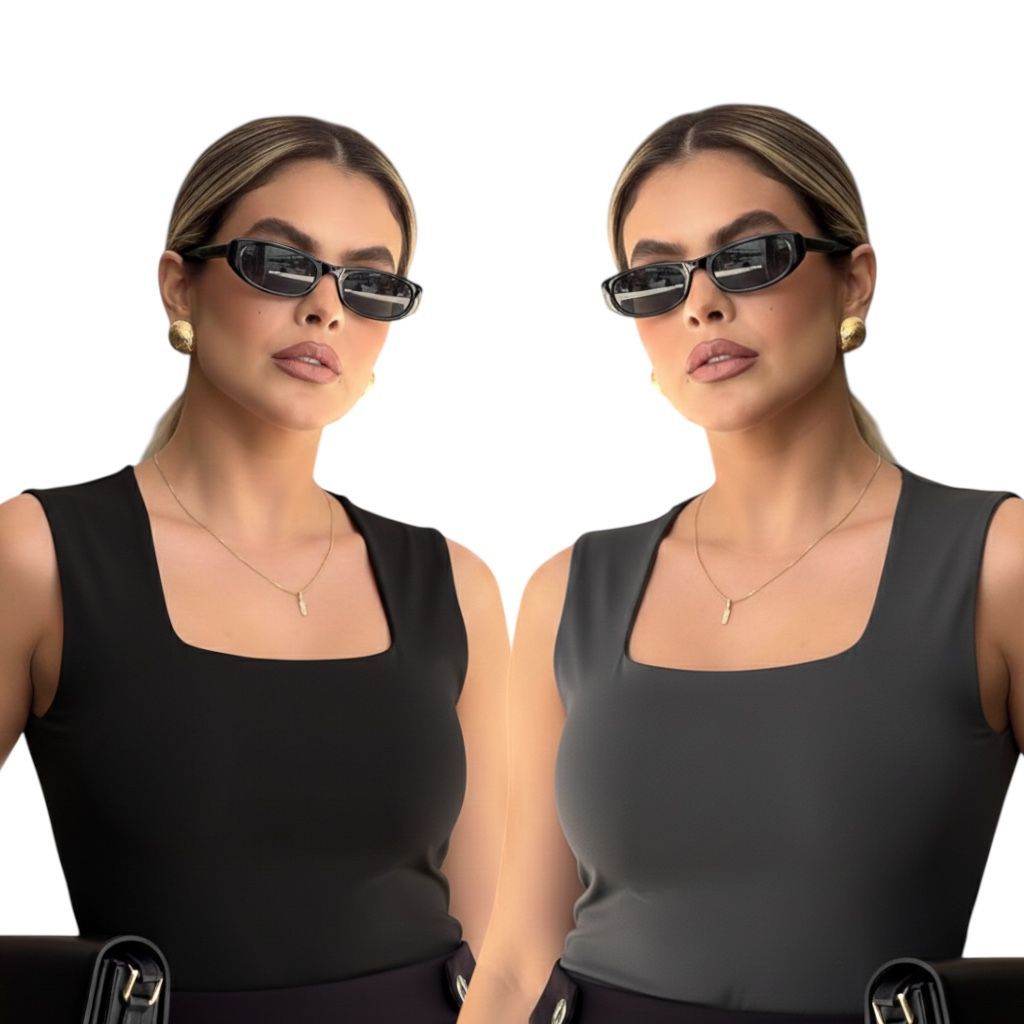 Kit 2 Regata Feminina Blusinha Decote Suplex Básica Lisa Moda Elegante Blogueira Tendência Academia