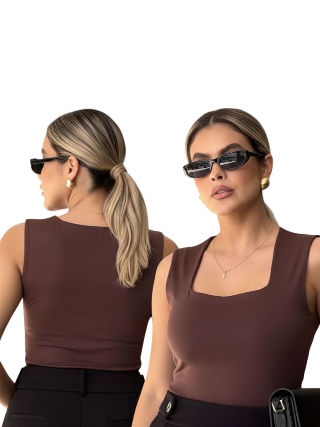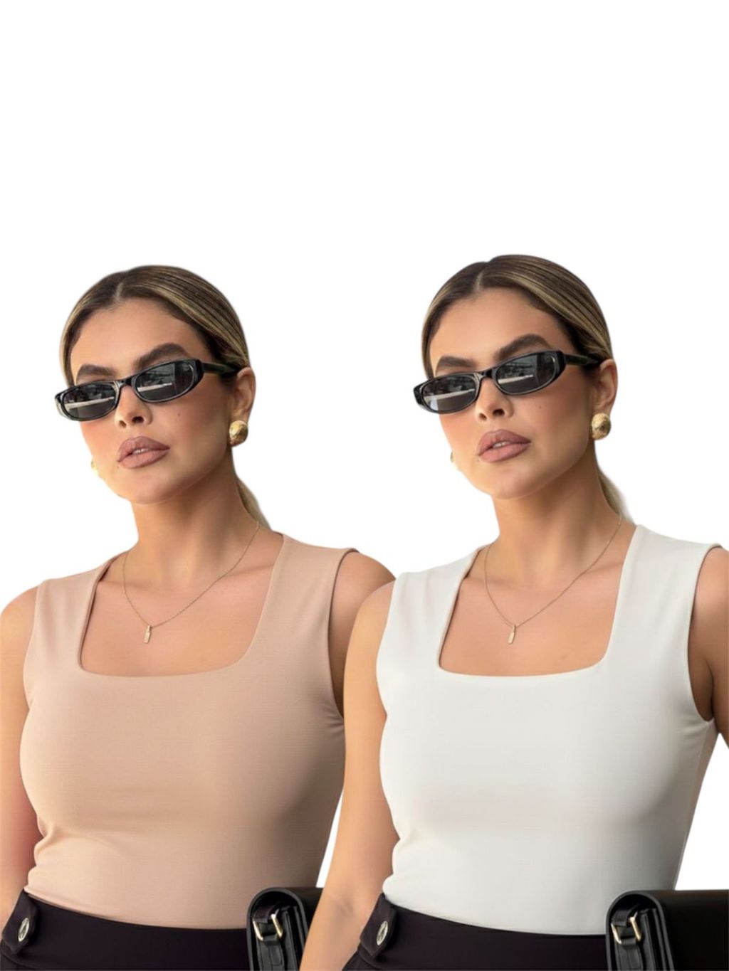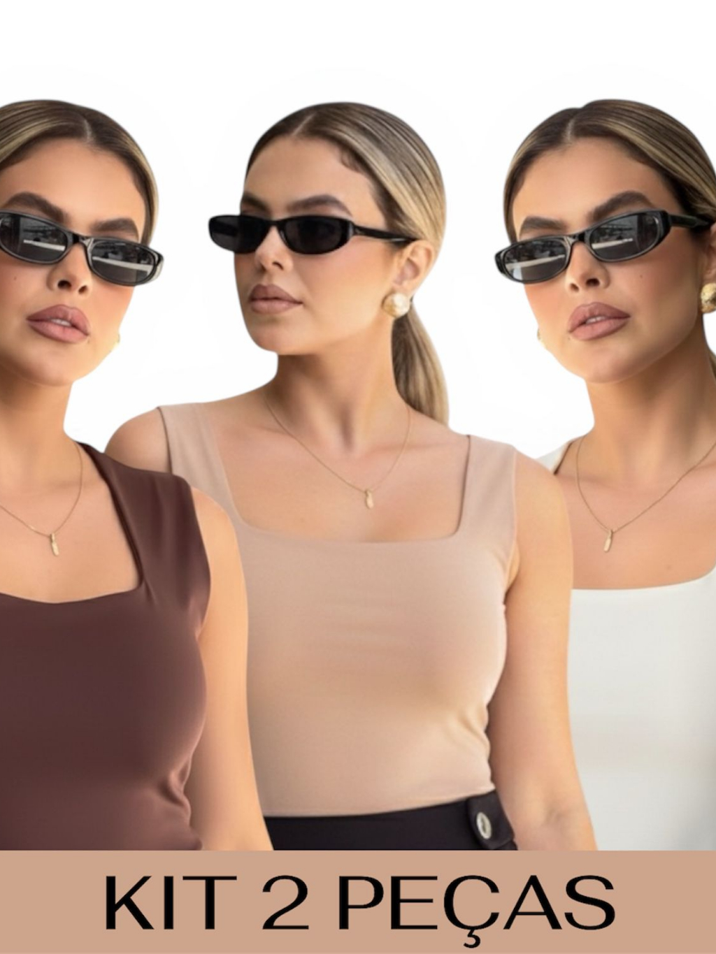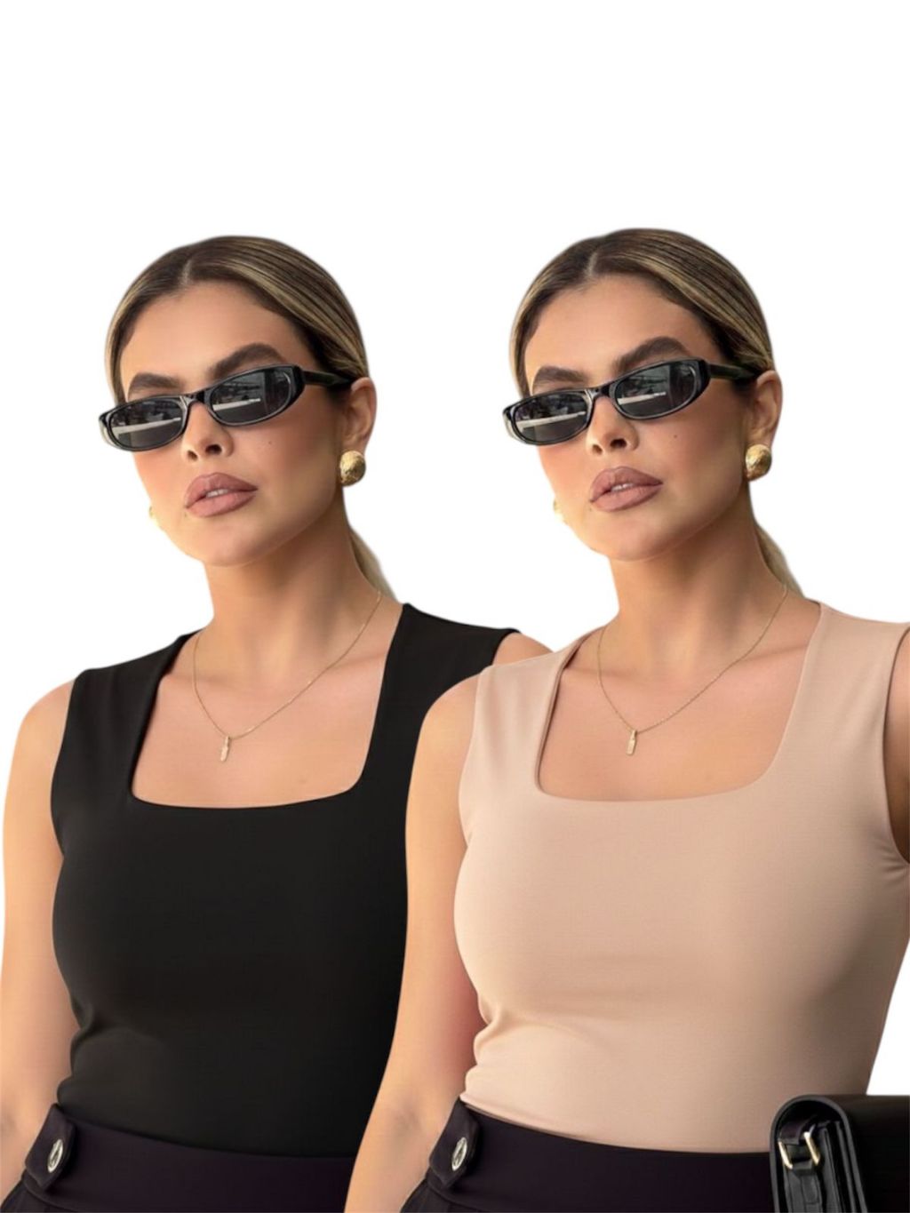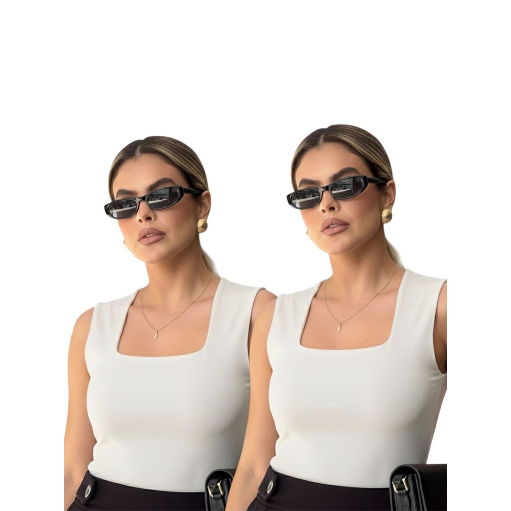 Kit 2 Regata Feminina Blusinha Decote Suplex Básica Lisa Moda Elegante Blogueira Tendência Academia