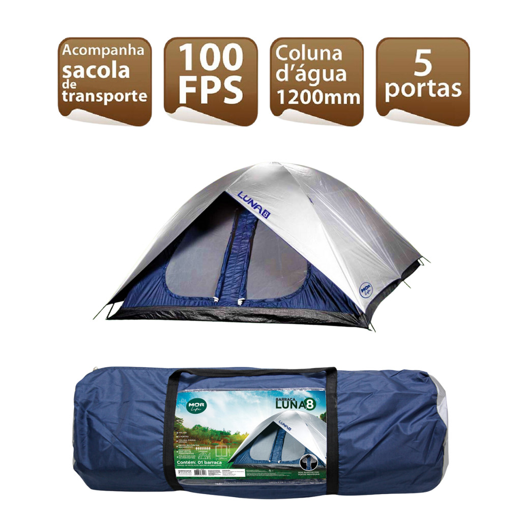 Barraca Camping Luna Para 8 Pessoas Impermeável Azul - Mor