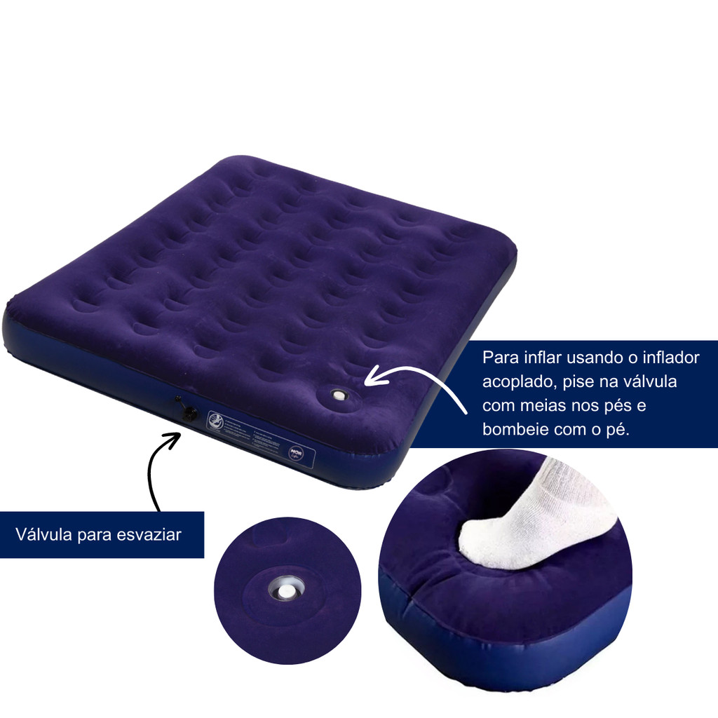 Colchão Inflável Casal com inflador Acoplado Multiuso - Mor