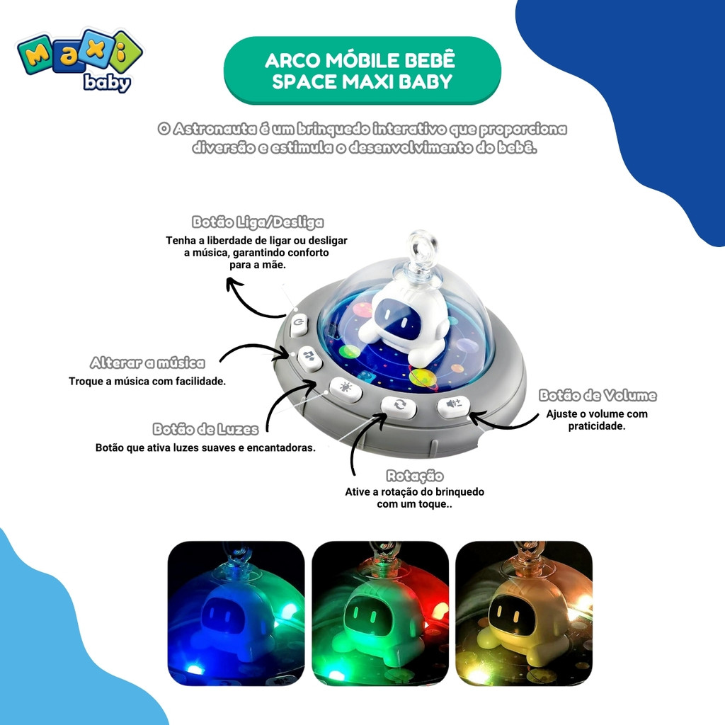 Móbile Bebê Arco Para Carrinho e Berço Space - Maxi Baby