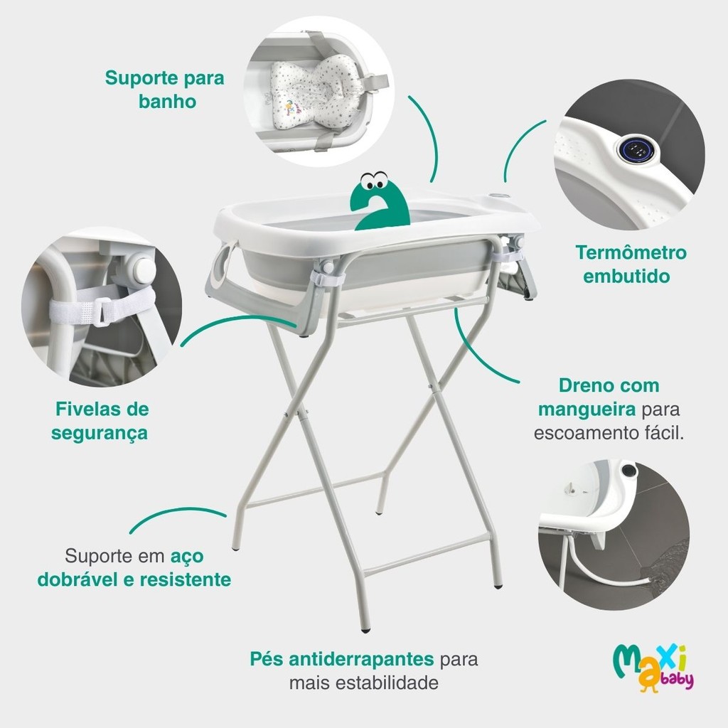 Banheira Para Bebê Dobrável C/Suporte Wish Branco Maxi Baby