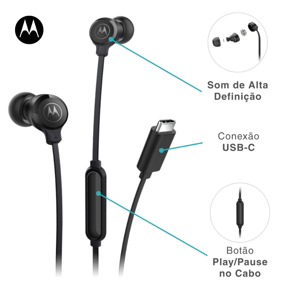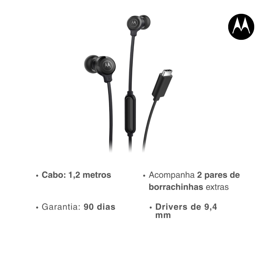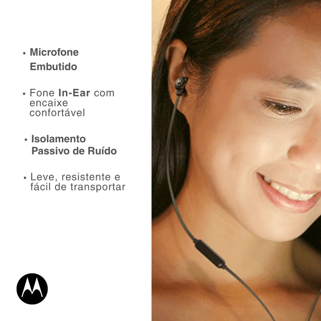 Fone de Ouvido Earbuds 3CS Anti Ruído USB Preto Motorola