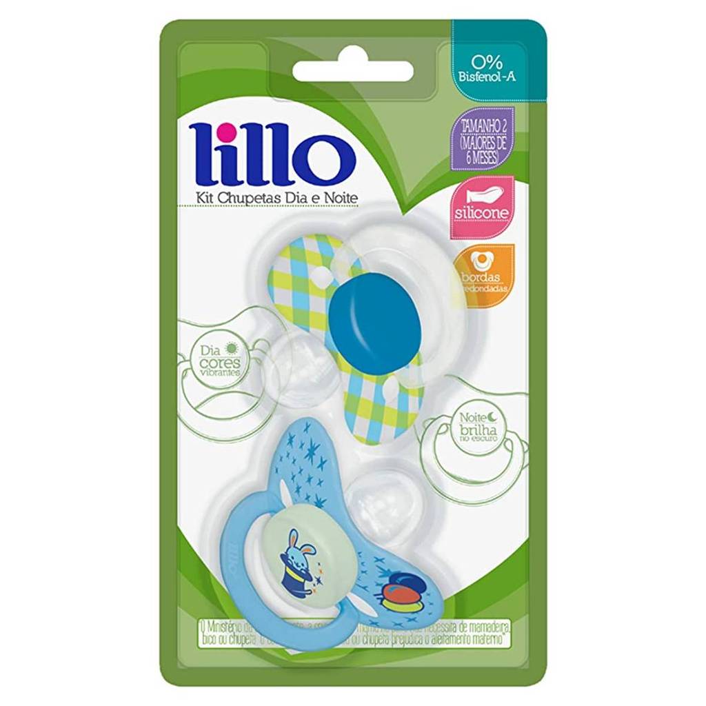 Kit 2 Chupetas Dia e Noite Brilha no Escuro 6m+ Azul - Lillo