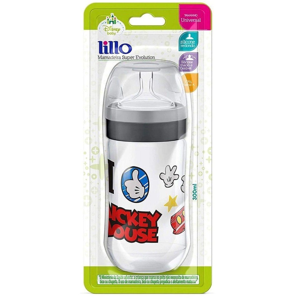 Mamadeira Super Evolution Disney 300ml Bico 6m+ Mickey Lillo
