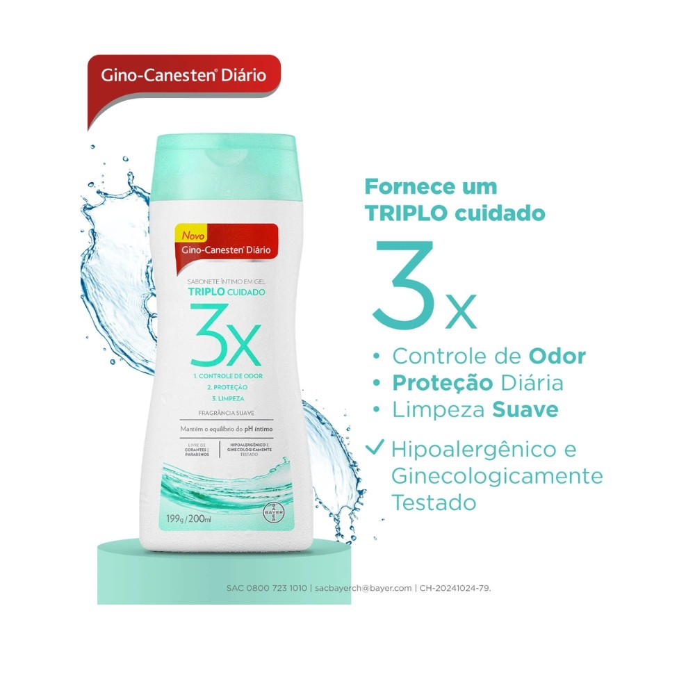 Sabonete Íntimo Diário Gel Triplo Cuidado 200ml GinoCanesten