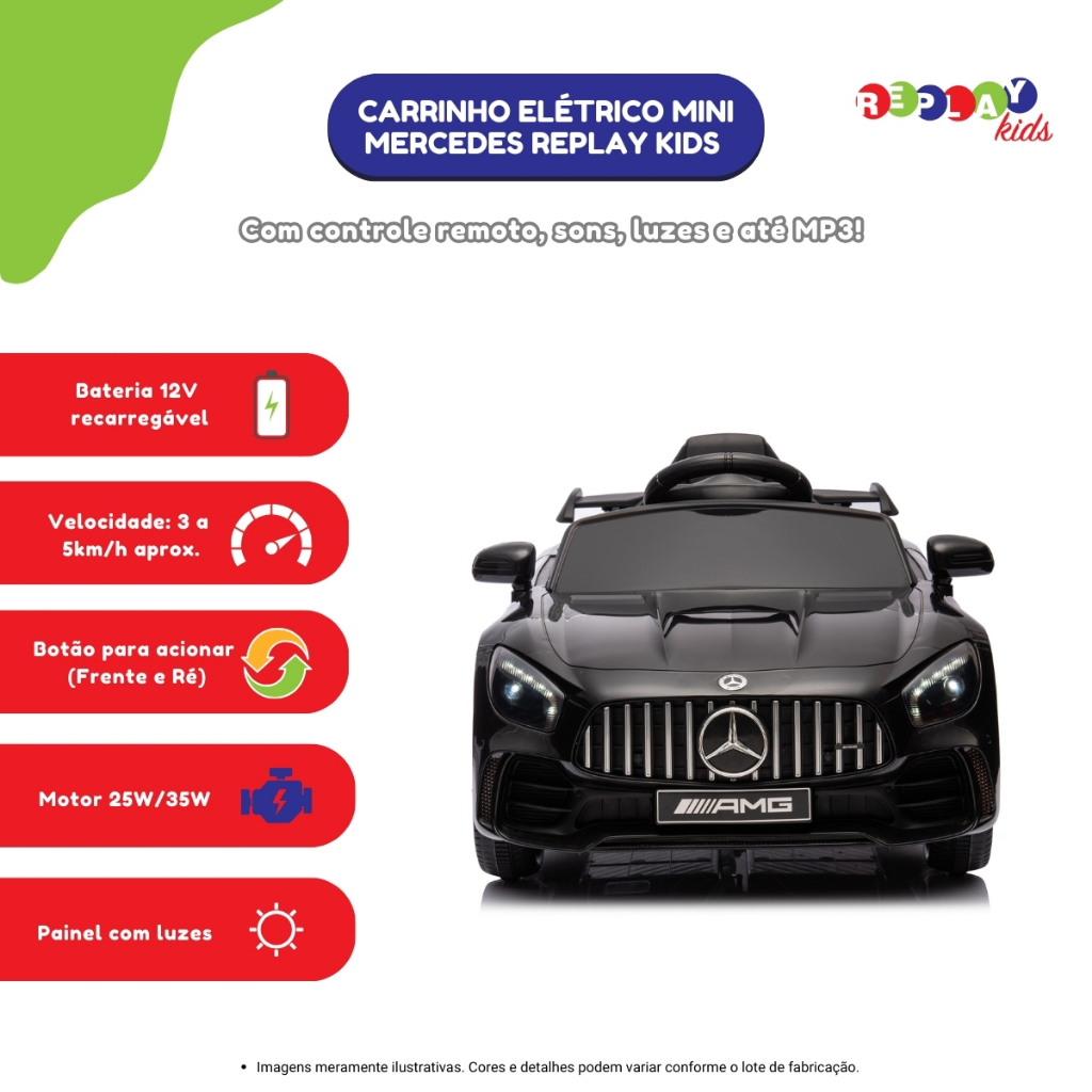 Carrinho Elétrico Infantil Mini Mercedes Replay Kids