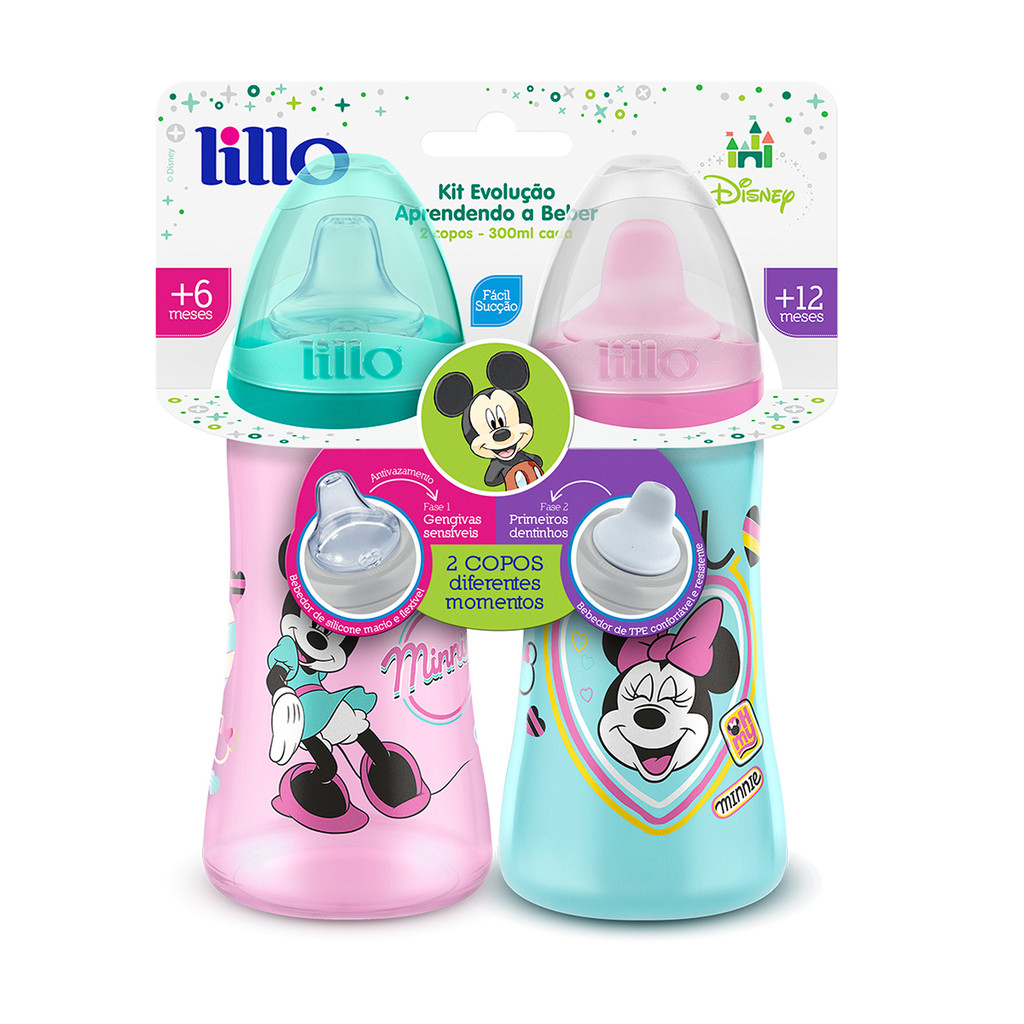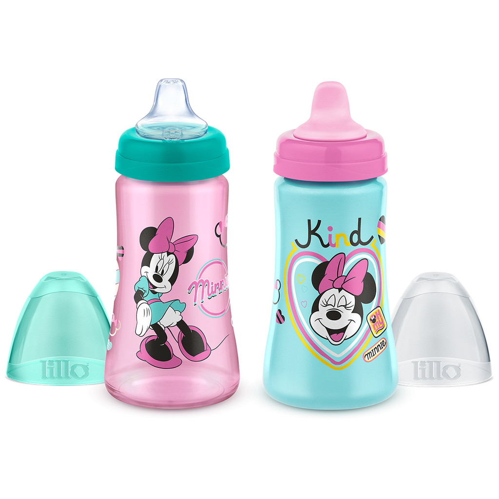 Kit 2 Copos Colors Bico De Silicone Disney Minnie Rosa Lillo