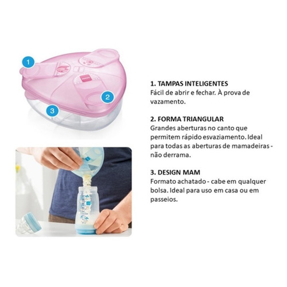 Porta Leite em Pó Bebê Milk Powder Box Triangular Rosa - MAM
