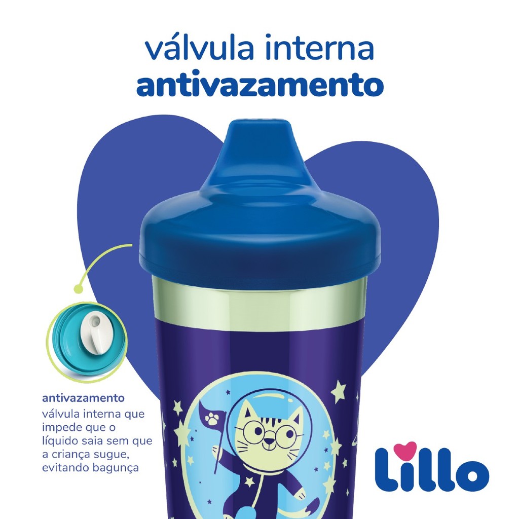 Copo Antivazamento Glow Max 320ml AZ Brilha no Escuro Lillo