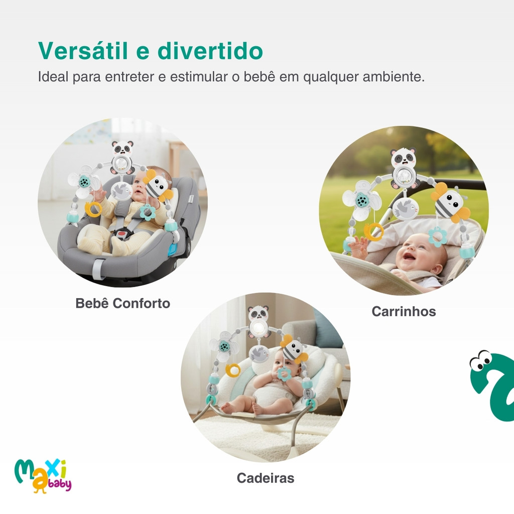 Arco Móbile Atividades Bebê Carrinho Berço Panda Maxi Baby