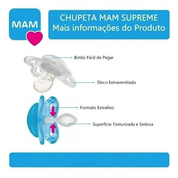 Kit Com 2 Chupetas Supreme Bico de Silicone 16m+ Azul - MAM