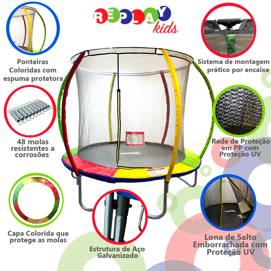 Cama Elástica Pula Pula Trampolim 2,44M Com Rede Replay Kids