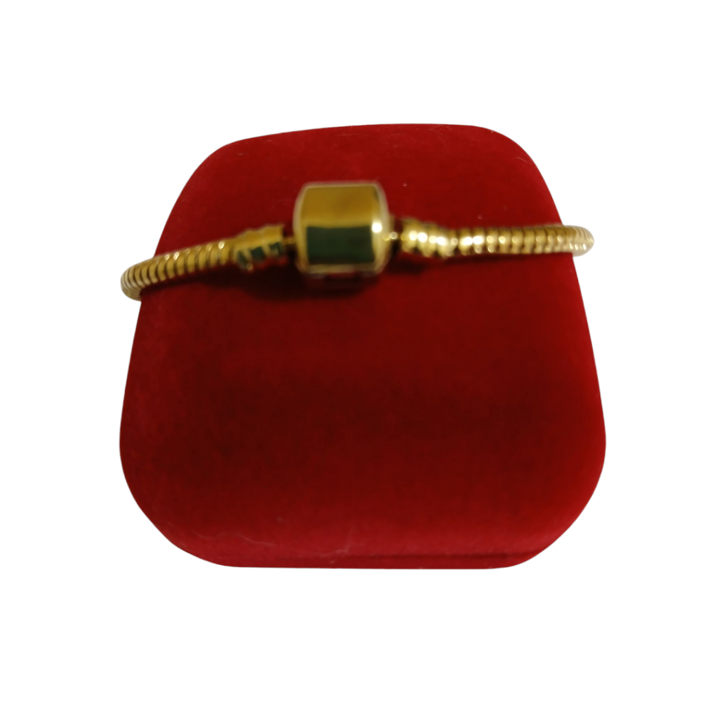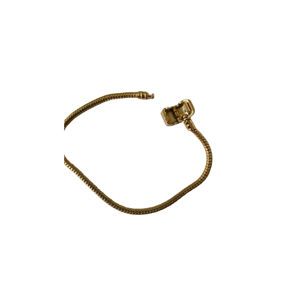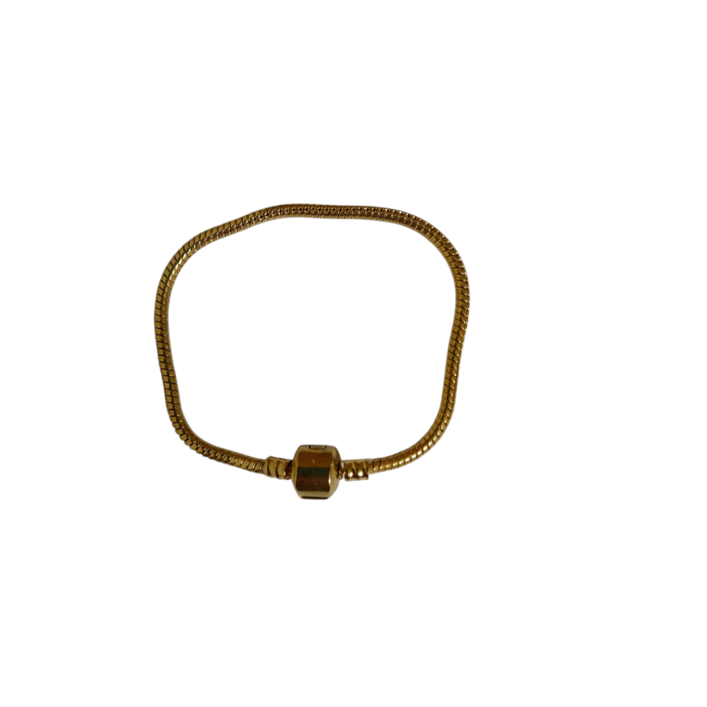 Pulseiraaço inoxidável dourada berloque em formato cilindrico rabo de rato medindo 19cm.