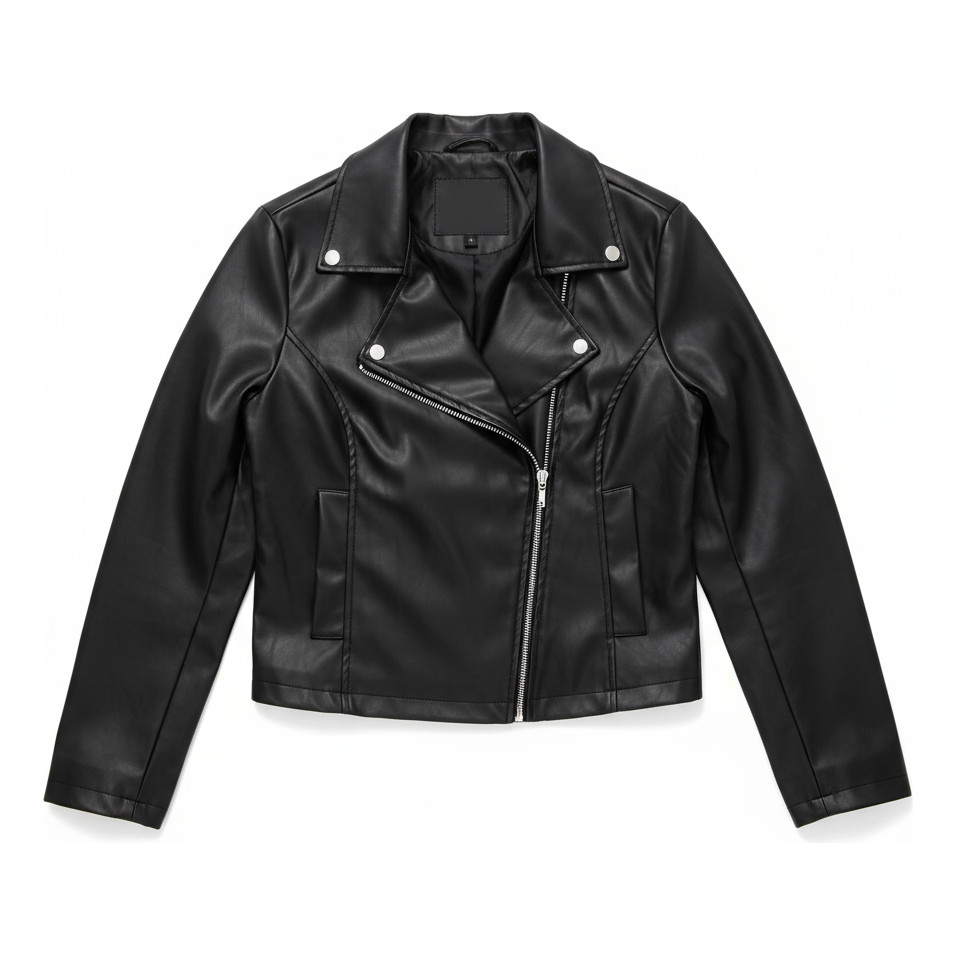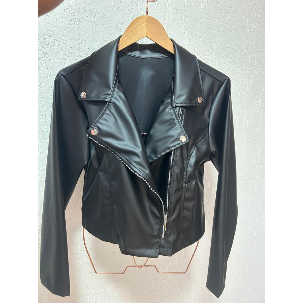 Jaqueta Feminina de Couro Sintético Outono Inverno Elegante com Zíper e Botões