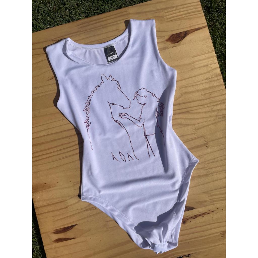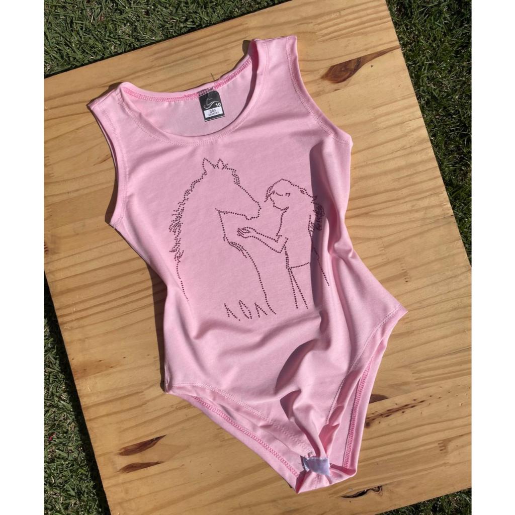 Body Infantil Regata Colorido Strass Brilho Boiadeira Country Cowgirl Menina e Cavalo