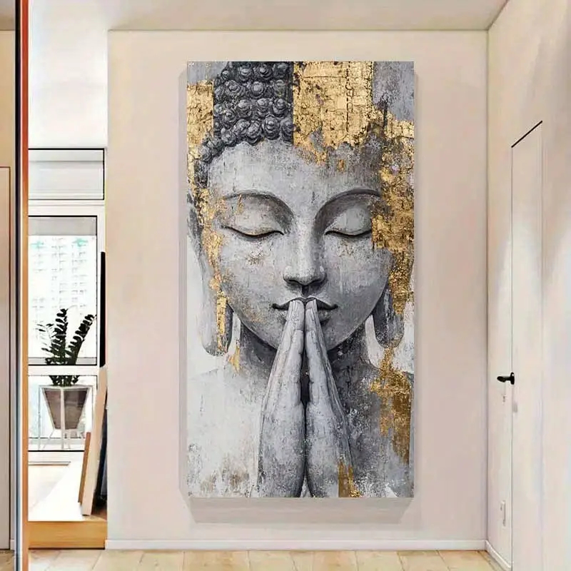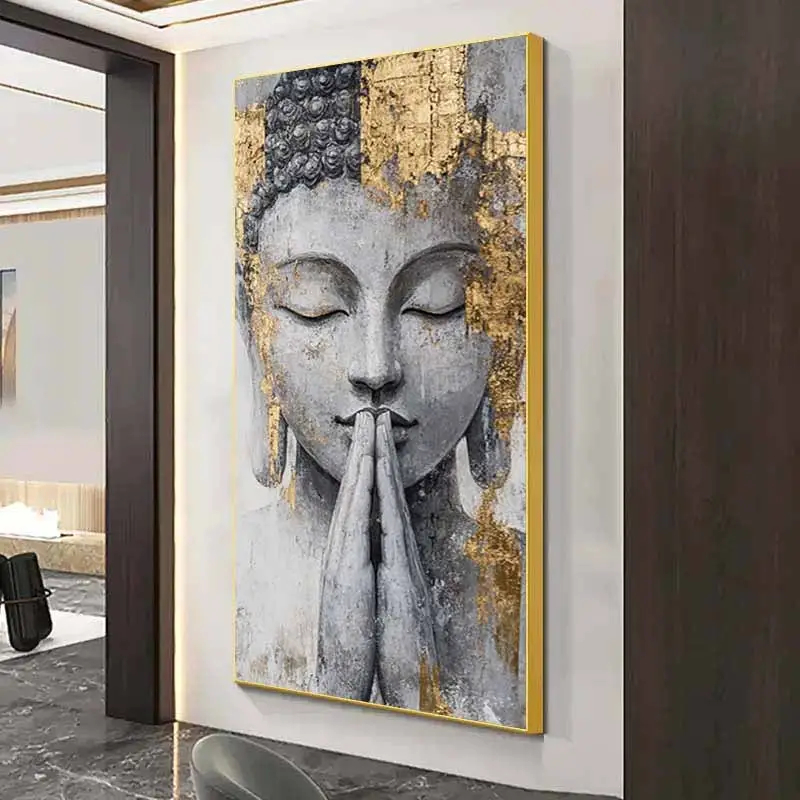 Quadro Decorativo 1 Peça Buda Branco Elegante Para Quarto Hall Escritório e Sala de Estar