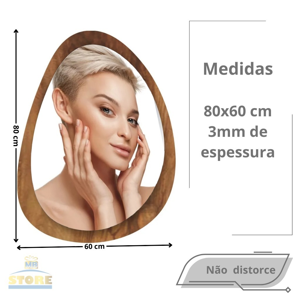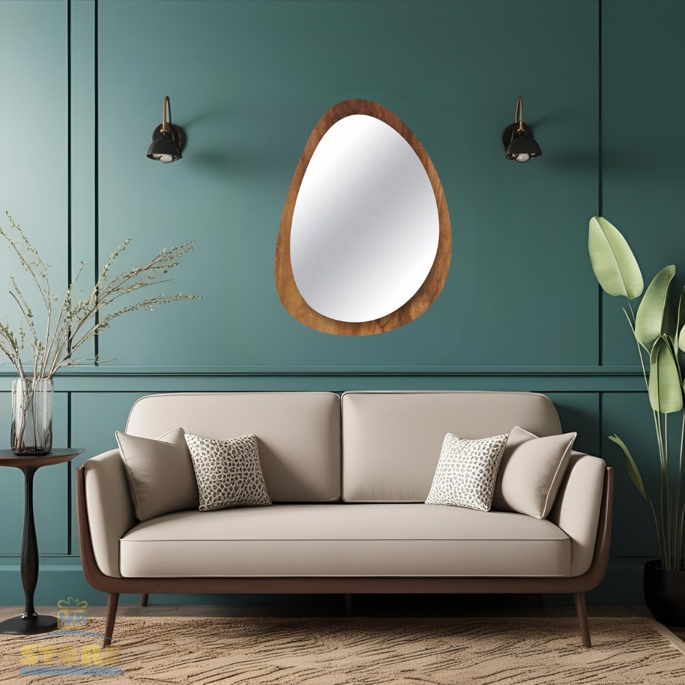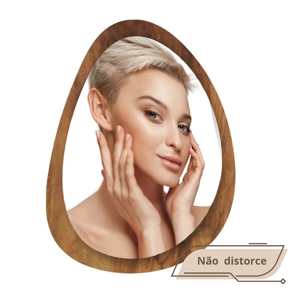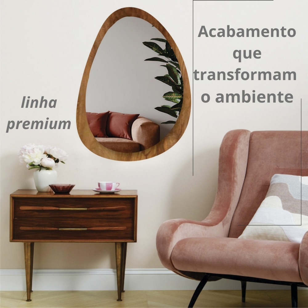 Espelho Organico Oval Grande 80X60cm Moldura em Madeira Natural Luxuoso