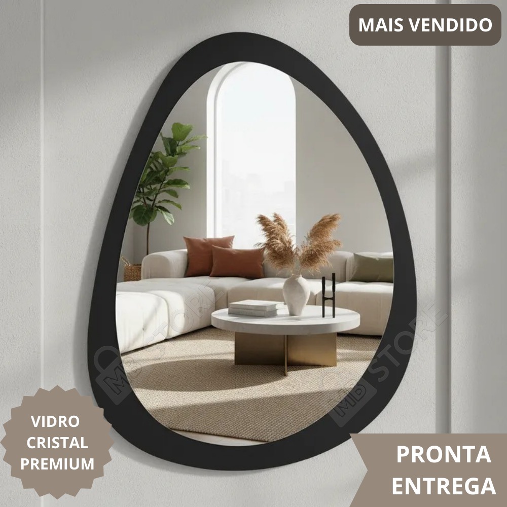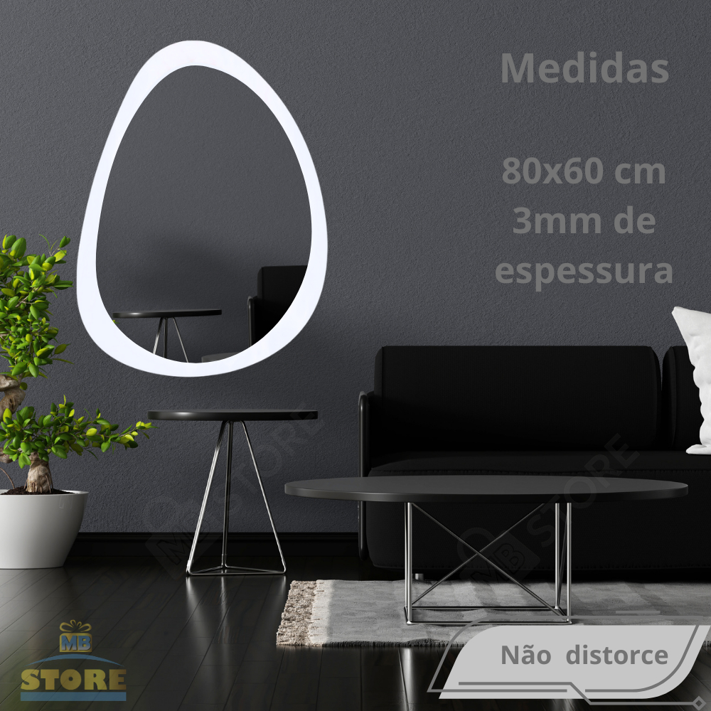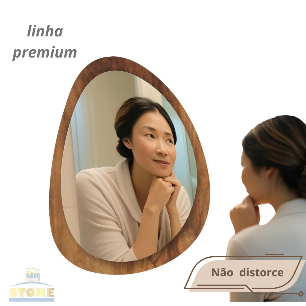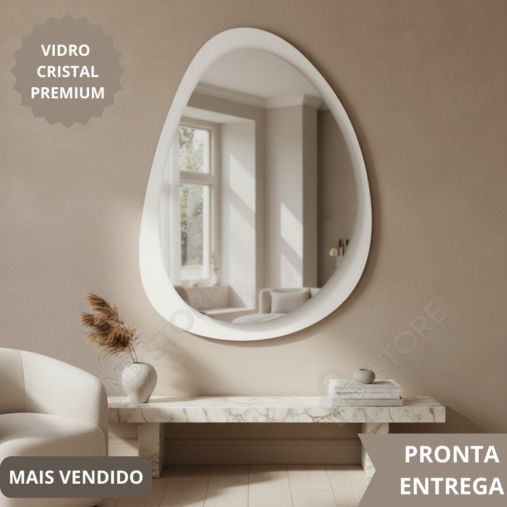 Espelho Organico Oval Grande 80X60cm Moldura em Madeira Natural Luxuoso