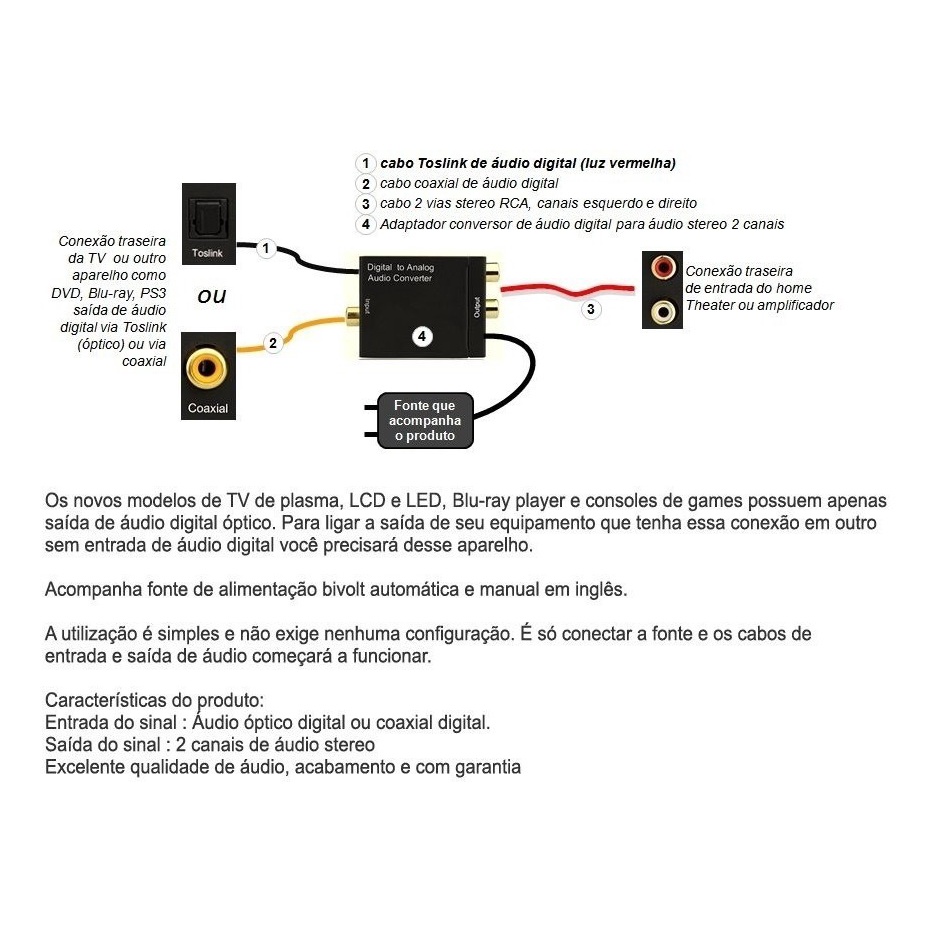 Adaptador Optico Coaxial Digital P/ Som Analogico Saida Rca