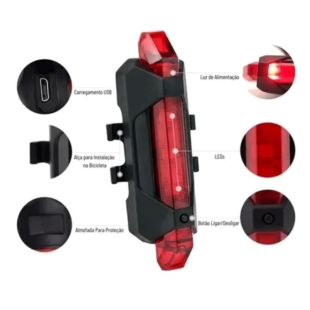 Farol Traseira Lanterna Luz Led Sinalizador Bicicleta Usb Vm