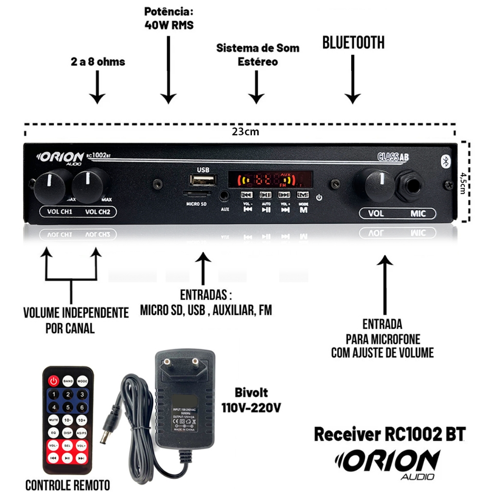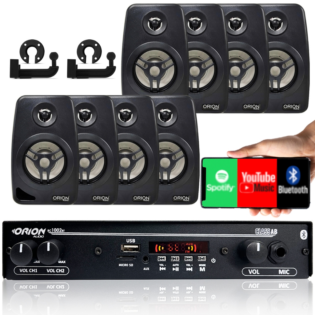Kit Som Ambiente 1002 Bt Control + 8 Caixas Parede Preta 55w