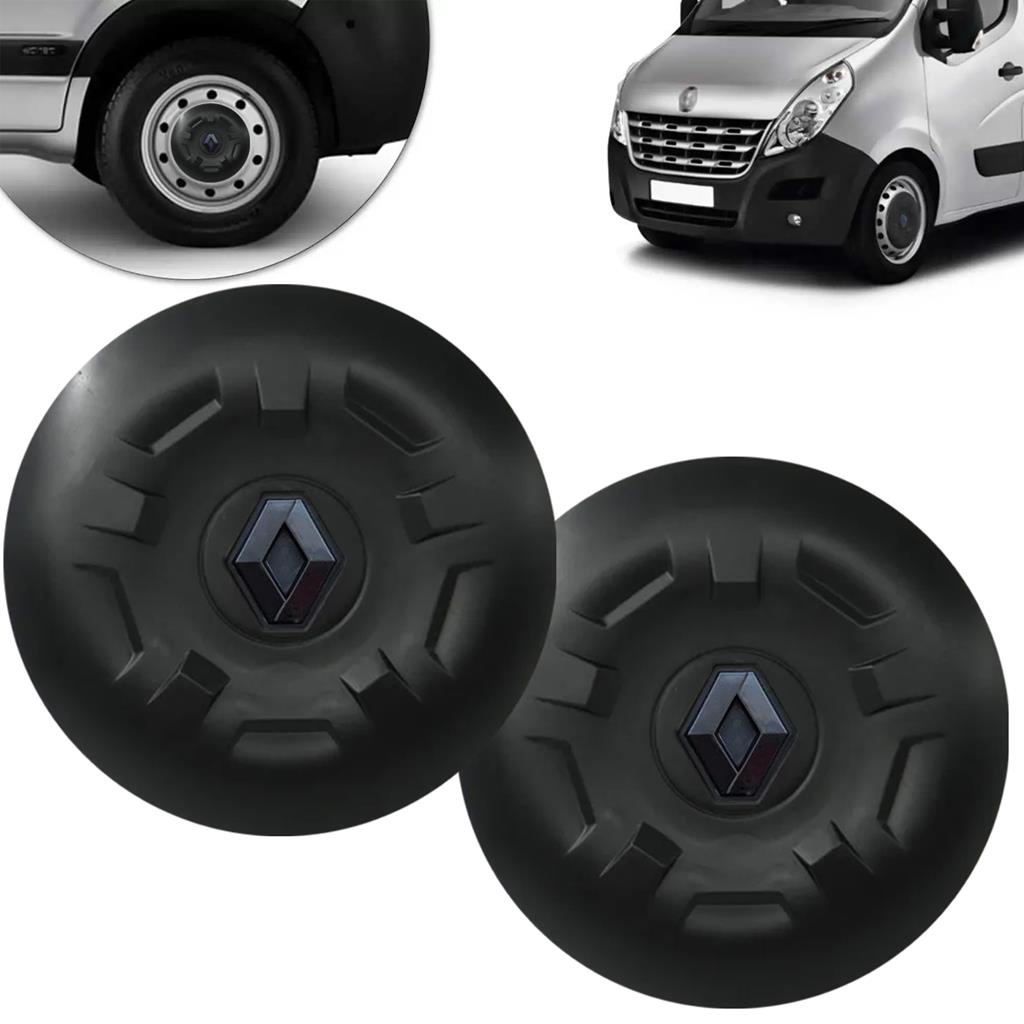 Par Calota Centro Roda Nova Renault Master Com Emblema Preto 2014 2015 2016 2017 2018 2019 2020 2021