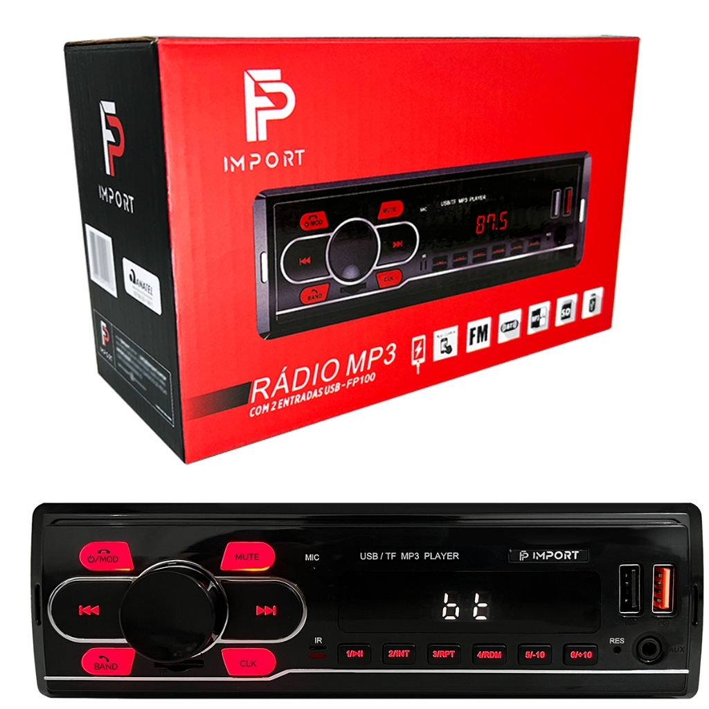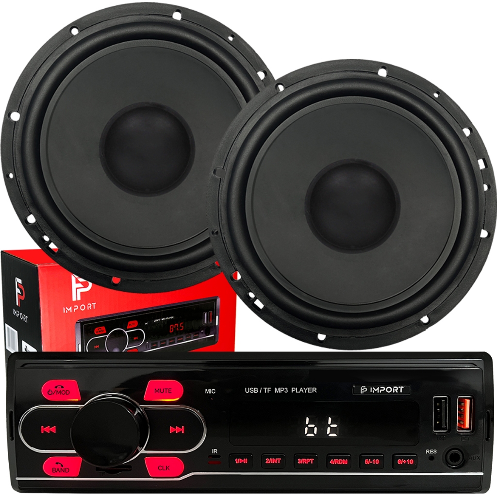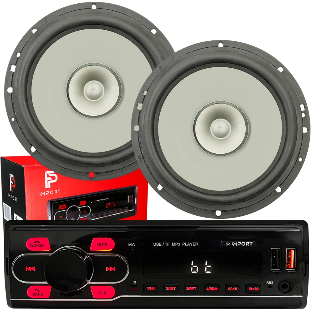 Kit Som Radio Mp3 Bluetooth Usb + 2 Alto Falante 6 Pol Carro