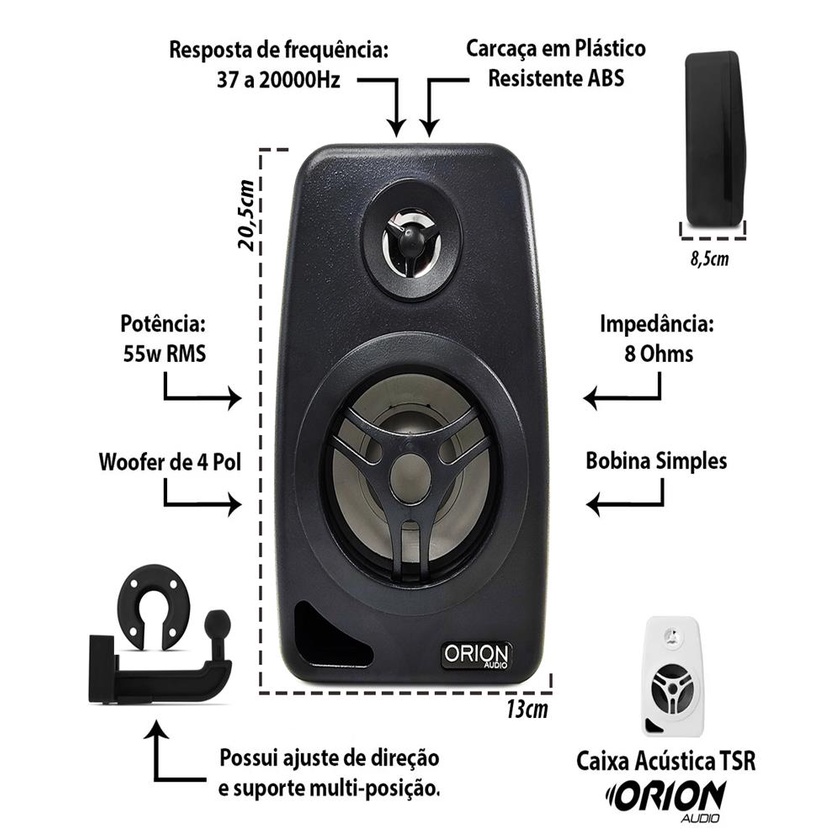 Kit Som Ambiente 6 Caixas Acusticas Pretas com Suporte + Amplificador Bluetooth Usb Aux 2 Canais Orion