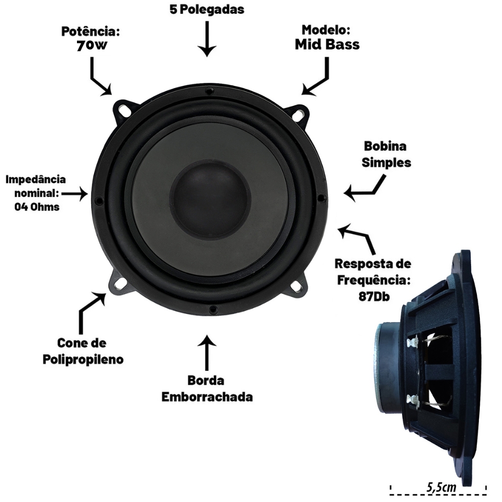 Kit 4 Alto Falantes 5 Pol Midbass Orion Som De Carro