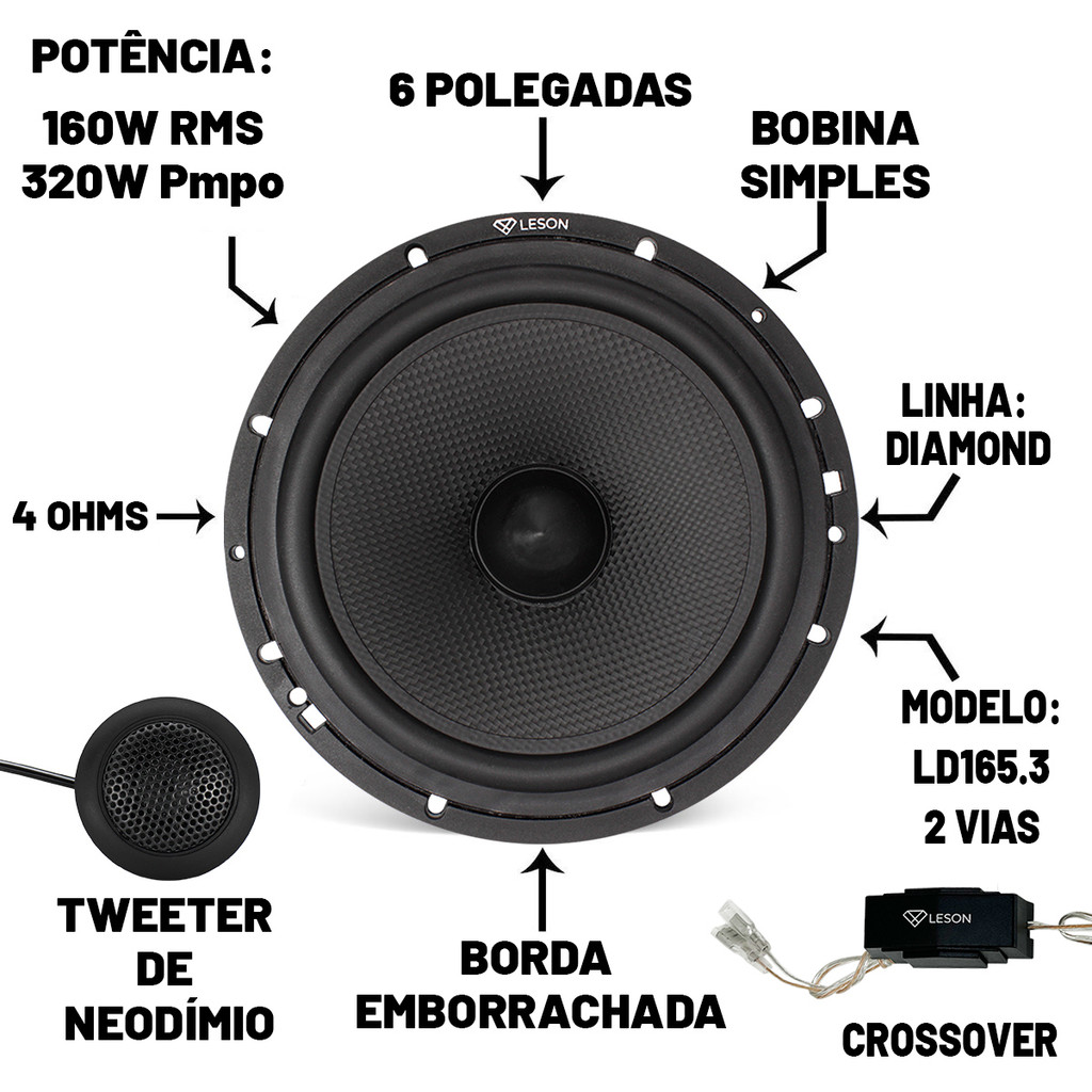 Kit 2 Vias 6 Polegadas 320w Tweeter Neodímio Leson Diamond Alto Falante Carro Automotivo Potente